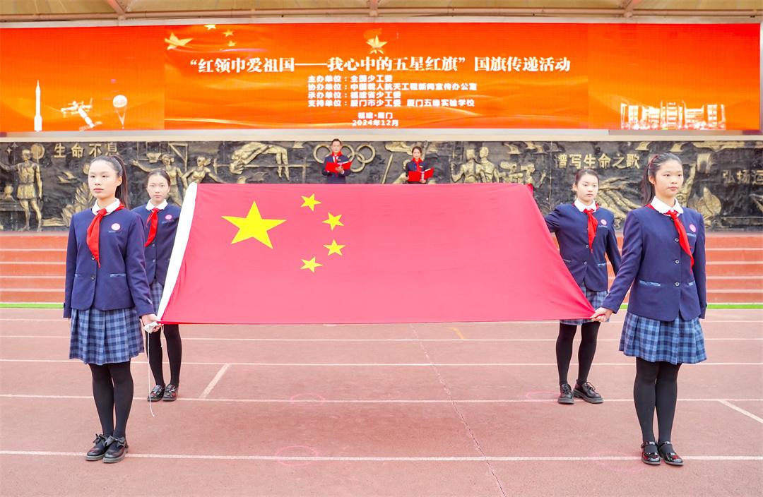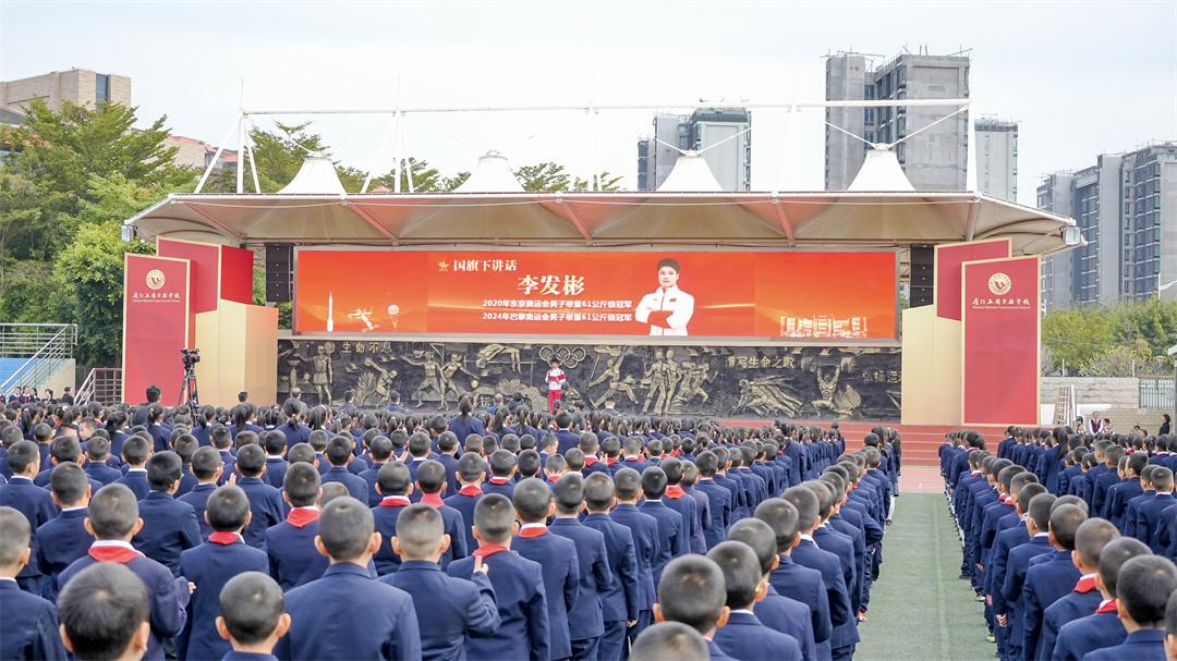 12月16日,“紅領(lǐng)巾愛祖國——我心中的五星紅旗”國旗傳遞活動在福建省廈門市舉辦,共青團省委副書記曾煥強、巴黎奧運會男子舉重61公斤級冠軍李發(fā)彬出席活動,共青團省委少年部、廈門市教育局德育處、共青團廈門市委辦公室負責(zé)同志以及閩浙兩省少先隊工作者代表、廈門五緣實驗學(xué)校師生代表共3000余人參加活動。