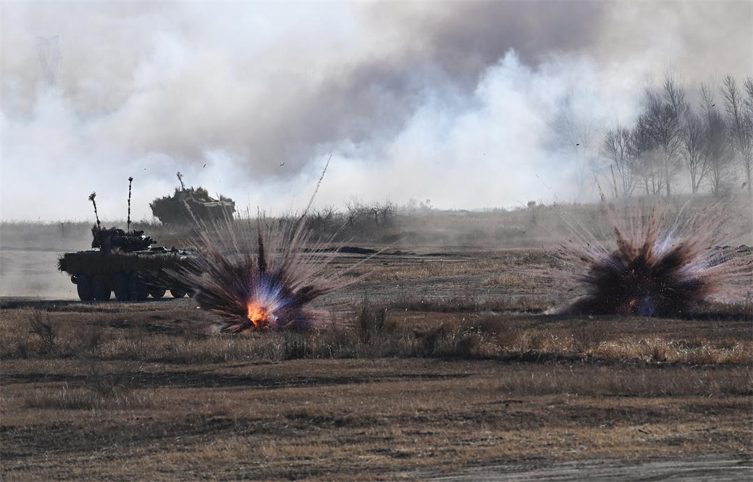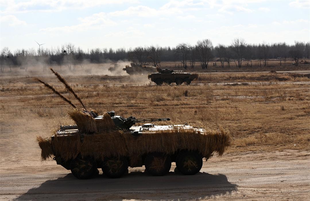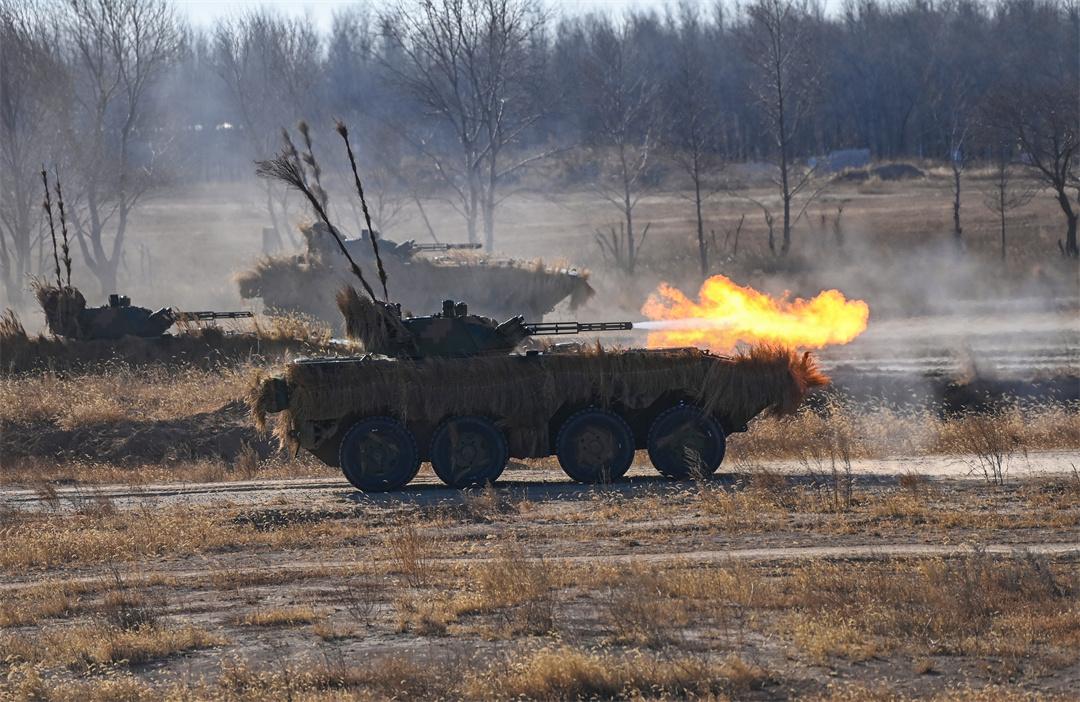 圖為“百戰(zhàn)百勝營(yíng)”官兵駕駛步戰(zhàn)車(chē)進(jìn)行實(shí)彈戰(zhàn)術(shù)綜合演練。