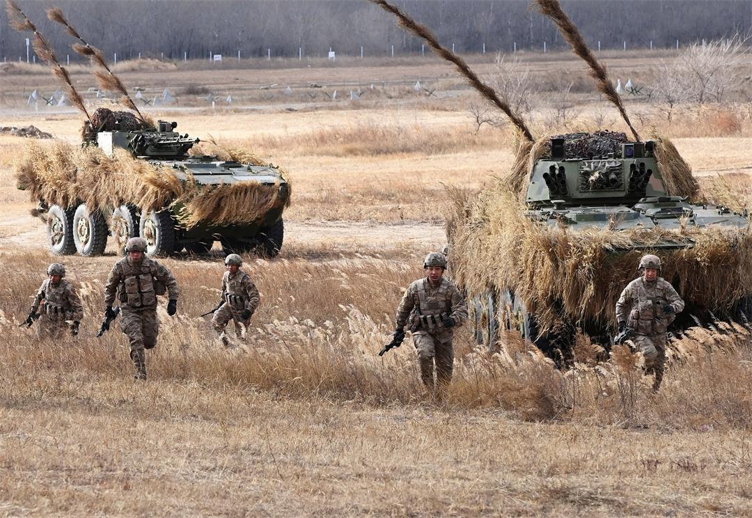 圖為“百戰(zhàn)百勝營(yíng)”官兵下車(chē)勇猛沖擊。