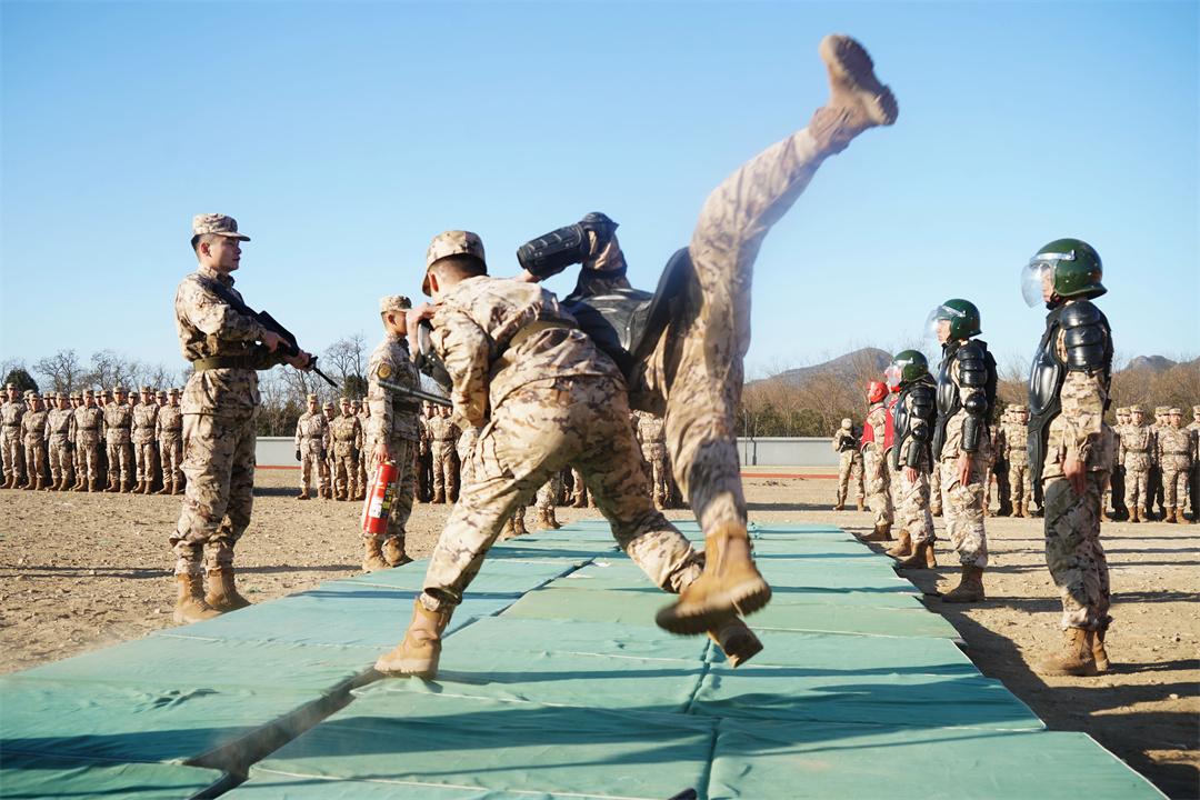 近日,武警北京總隊執(zhí)勤第十四支隊打響開訓“第一槍”。圖為官兵們投入實戰(zhàn)化軍事訓練。