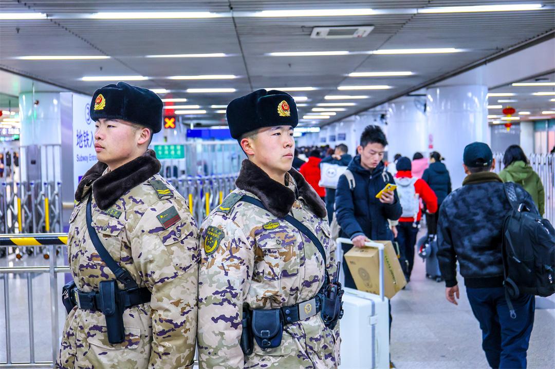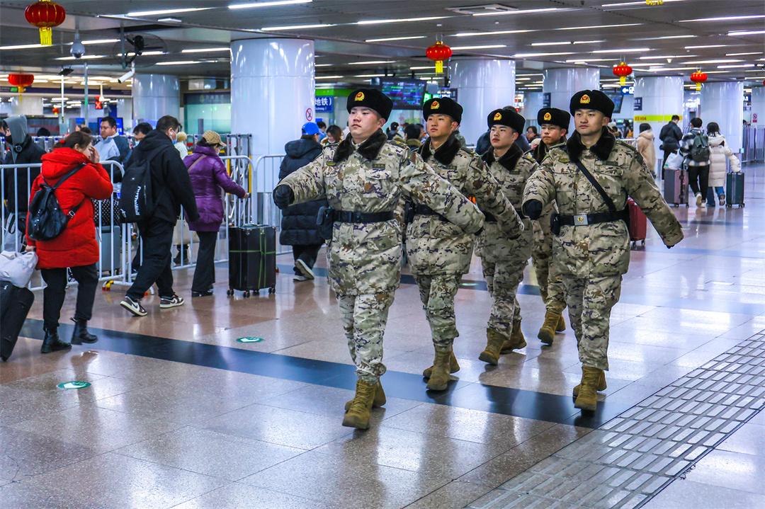 2月3日至6日,北京迎來返程客流高峰。為確保旅客安全順利抵京,擔負北京西站執(zhí)勤任務的武警北京總隊執(zhí)勤第六支隊官兵堅守崗位,守護旅客出行平安。