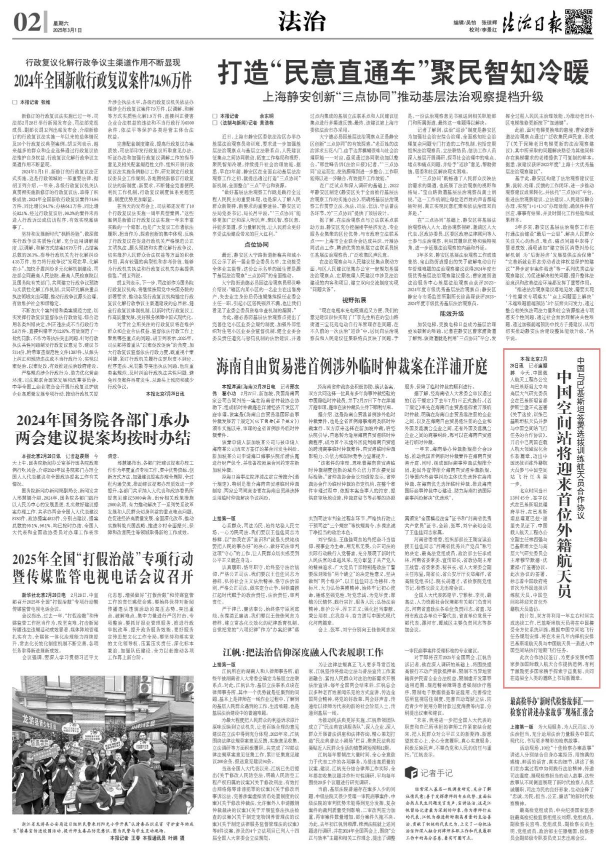 2月28日,中國載人航天工程辦公室與巴基斯坦太空與高層大氣研究委員會在巴基斯坦首都伊斯蘭堡正式簽署《關(guān)于選拔、訓練巴基斯坦航天員并參與中國空間站飛行任務的合作協(xié)議》,開啟中巴兩國在載人航天領域深化合作新篇章,邁出中國選拔訓練外籍航天員參與中國空間站飛行任務第一步。