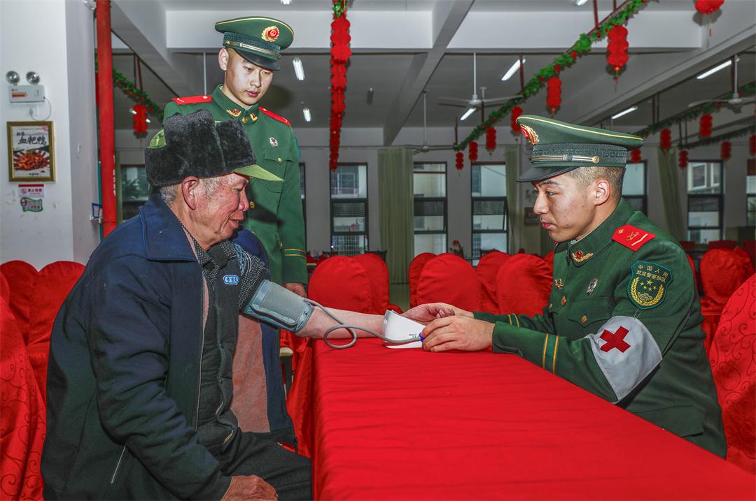 圖為武警官兵為老人測(cè)量血壓。