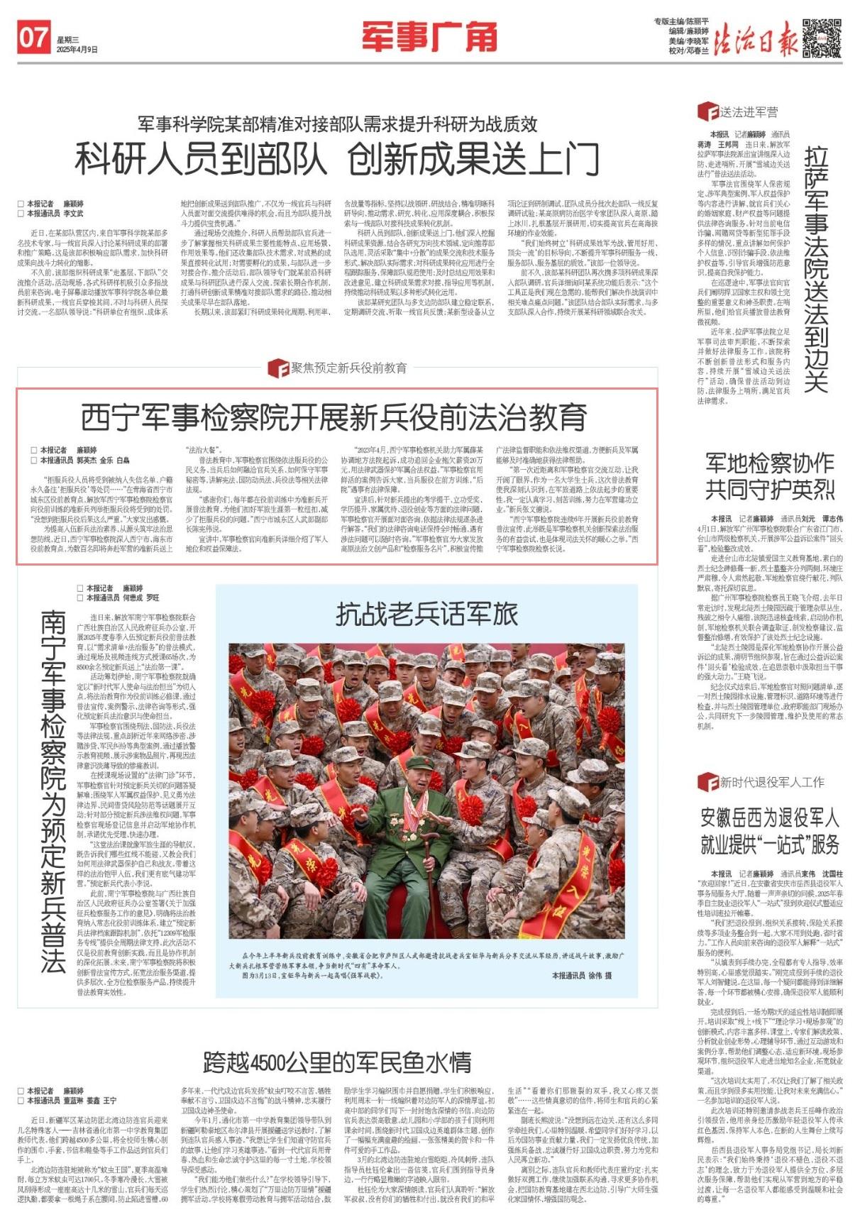 “2023年4月,西寧軍事檢察機關助力軍屬薛某協(xié)調地方法院起訴,成功追回企業(yè)拖欠薪資20萬元,用法律武器保護軍屬合法權益?!避娛聶z察官用鮮活的案例告訴大家,當兵服役在前方訓練,“后院”遇事有法律保障。