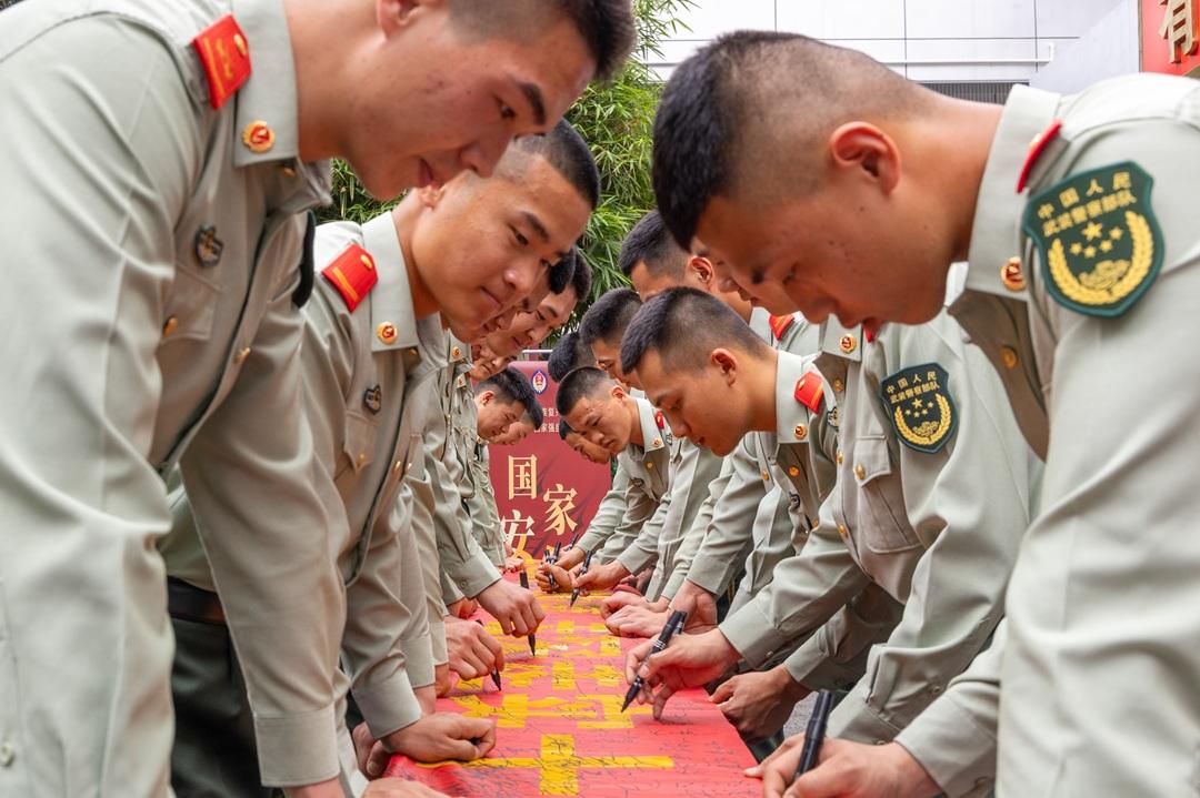 圖為武警官兵開(kāi)展全民國(guó)家安全教育日主題簽名活動(dòng)。