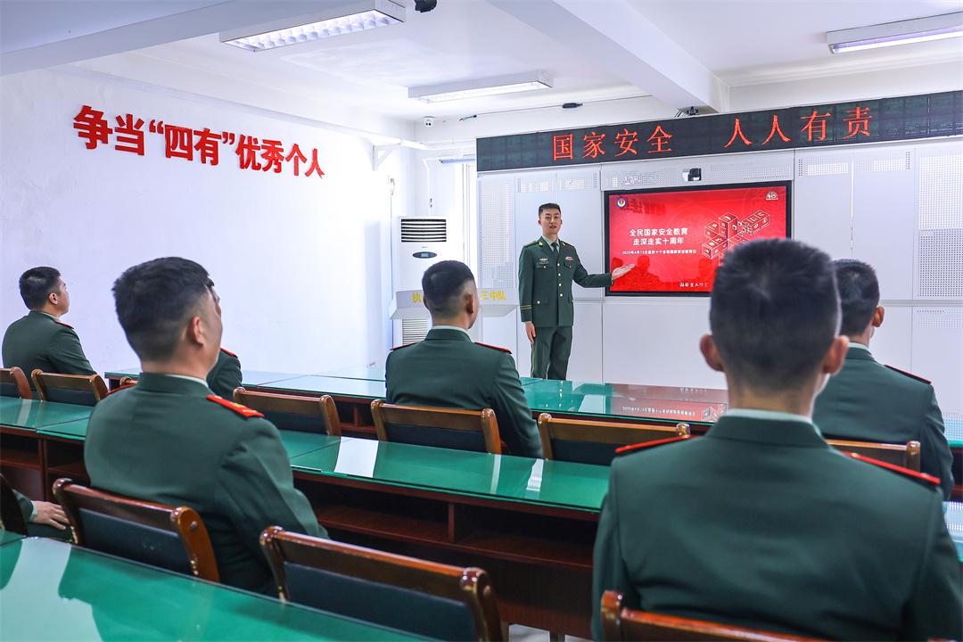 開展國家安全教育、舉辦主題知識競賽、講述身邊安全故事……連日來,形式多樣的國家安全教育主題活動在該支隊(duì)各單位展開,增強(qiáng)了官兵對總體國家安全觀的認(rèn)識,強(qiáng)化了推進(jìn)國防和軍隊(duì)建設(shè)的責(zé)任擔(dān)當(dāng)。“國家安全不僅包括政治安全、軍事安全,還有糧食安全、生物安全、數(shù)據(jù)安全等,這些都是國家安全的重要內(nèi)容,通過開展這次主題活動提高了我對國家安全的立體認(rèn)識?!痹撝ш?duì)下士黃沈南說。