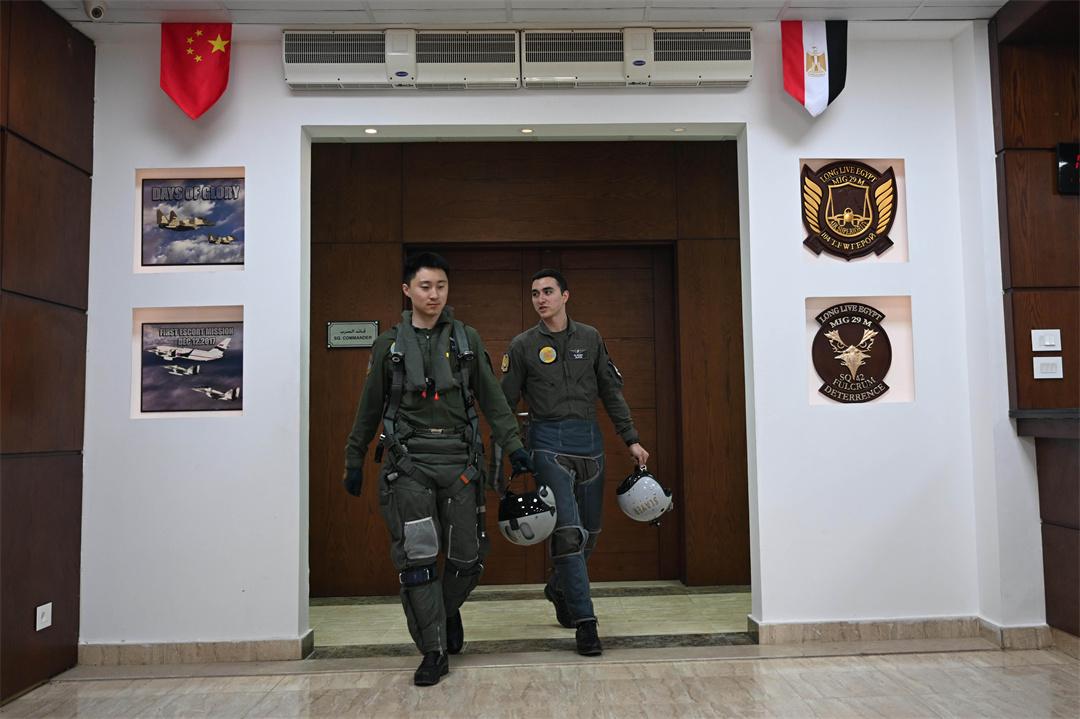 圖為參加中?!拔拿髦?2025”空軍聯(lián)合訓練的中埃雙方飛行員并肩前行。余紅春 攝