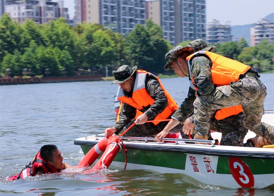 圖為武警官兵開展解救落水群眾模擬訓(xùn)練。歐家程 攝