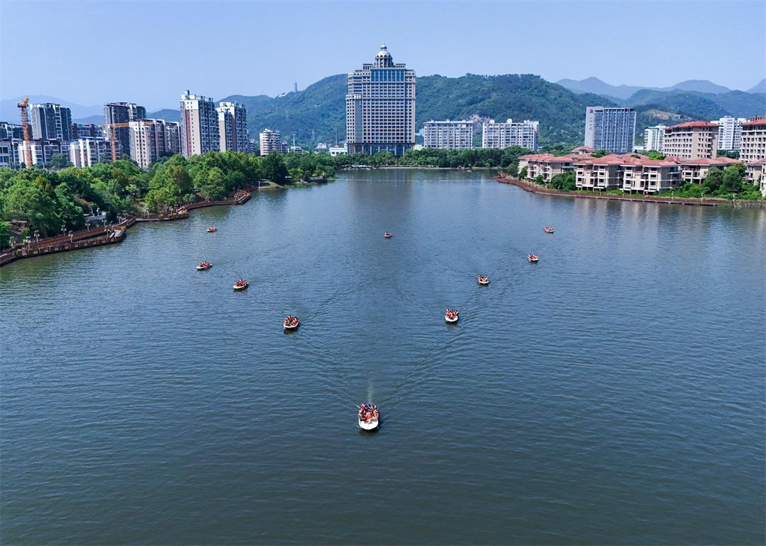 連日來(lái),福建省三明市沙縣區(qū)鳳崗街道龍湖公園水域一片火熱練兵景象。隨著指揮員一聲令下,十余艘舟艇如離弦之箭,破浪而出。