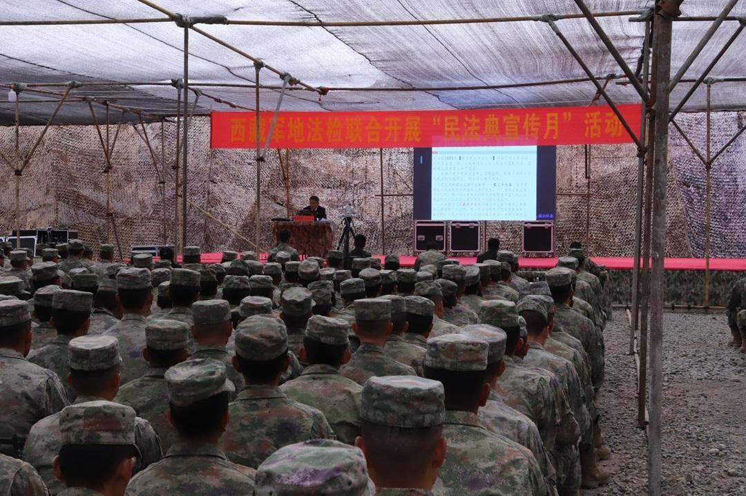 在第五個(gè)“民法典宣傳月”期間,解放軍拉薩軍事法院、拉薩軍事檢察院聯(lián)合西藏自治區(qū)高級(jí)人民法院組成宣講團(tuán),通過(guò)“專題宣講+產(chǎn)品賦能+定制服務(wù)”三位一體模式,開(kāi)展“法檢聯(lián)動(dòng) 典亮軍營(yíng)”普法宣傳活動(dòng)。