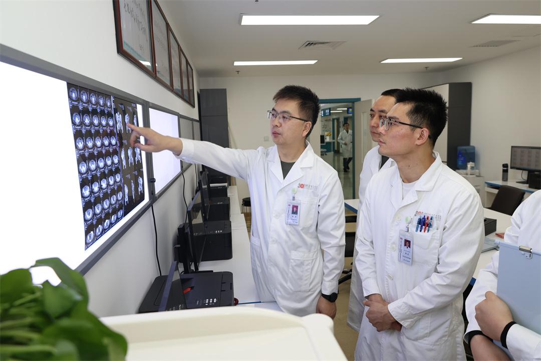 圖為陳華主任醫(yī)師帶領團隊正在查看患者的片子影像,仔細分析傷情。鞠文富 攝