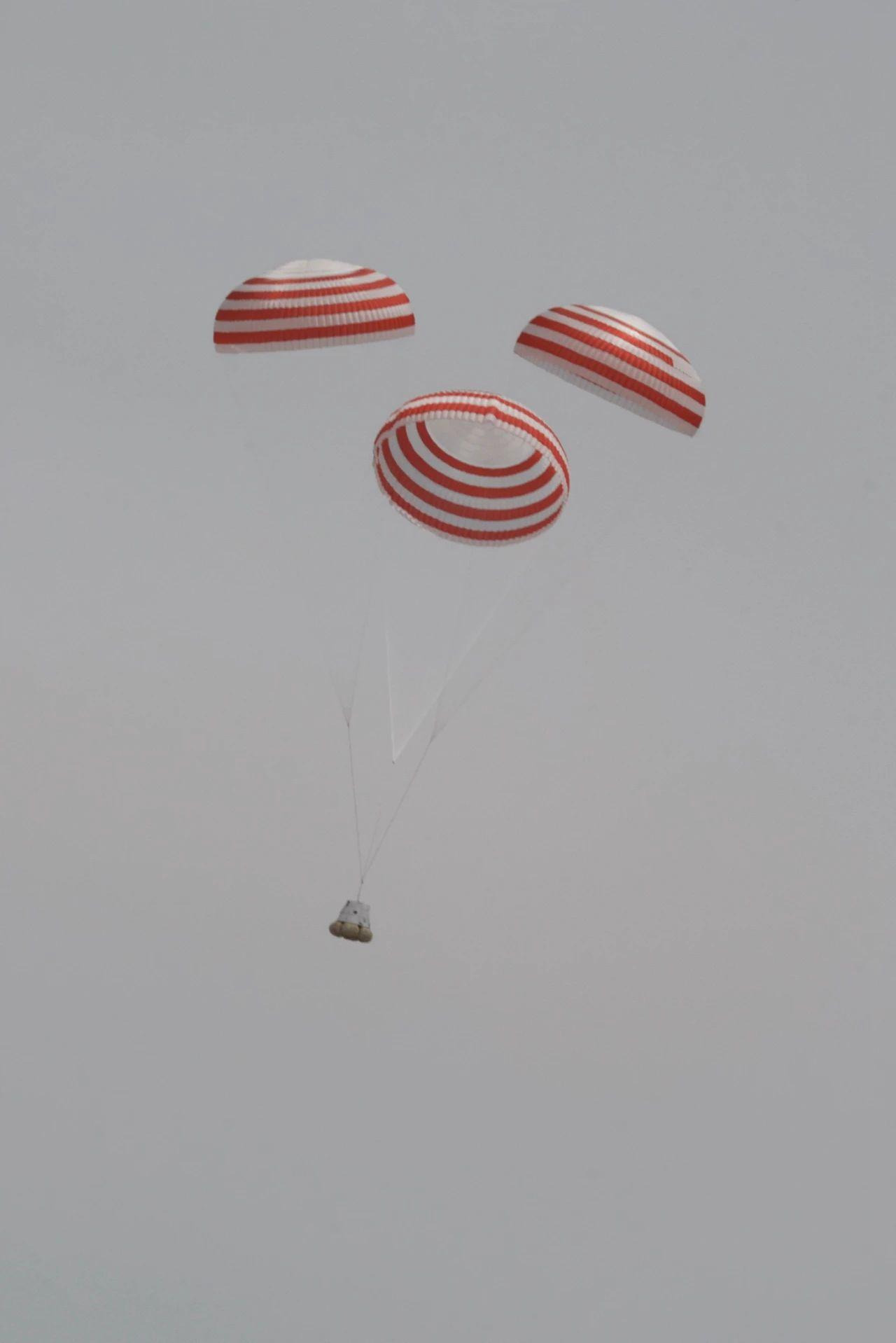 12時(shí)30分,下達(dá)點(diǎn)火指令,夢(mèng)舟載人飛船逃逸發(fā)動(dòng)機(jī)成功點(diǎn)火,船塔組合體在固體發(fā)動(dòng)機(jī)推動(dòng)下騰空而起,約20秒后達(dá)到預(yù)定高度,返回艙與逃逸塔實(shí)現(xiàn)安全分離,降落傘順利展開。12時(shí)32分,返回艙使用氣囊緩沖方式安全著陸于試驗(yàn)落區(qū)預(yù)定區(qū)域,試驗(yàn)取得圓滿成功。