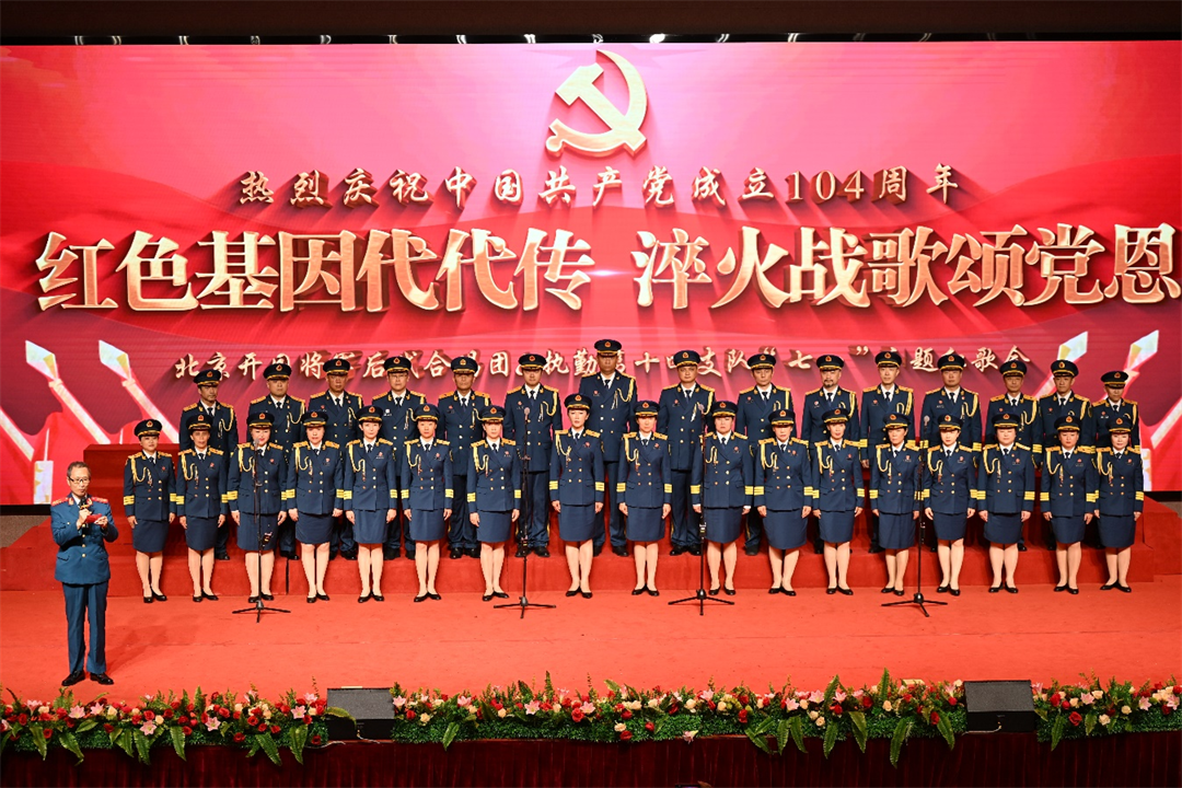 為熱烈慶祝中國共產(chǎn)黨成立104周年,近日,武警北京總隊(duì)執(zhí)勤第十四支隊(duì)特邀北京開國將軍后代合唱團(tuán),共同舉辦“紅色基因代代傳 淬火戰(zhàn)歌頌黨恩”七一主題紅歌會(huì),用歌聲講述黨的歷史,以旋律重溫光榮歲月。