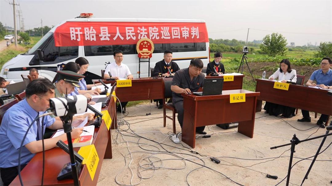 7月15日,解放軍南京軍事檢察院協(xié)同淮安市盱眙縣人民檢察院,對一起過失損壞軍事通信案提起刑事附帶民事公益訴訟,并在案發(fā)地盱眙縣馬壩鎮(zhèn)一處農(nóng)田間公開開庭審理。盱眙縣人民檢察院檢察長潘凌云作為公訴人出庭指控犯罪,南京軍事檢察院大校檢察長劉劍作為附帶民事公益訴訟起訴人出庭提起民事公益訴訟,盱眙縣人民法院院長田庚擔(dān)任審判長。為加大案件警示教育效果,庭審邀請全國人大代表、江蘇省人大代表、部隊有關(guān)人員,以及案發(fā)地附近村民100余人參與旁聽。
