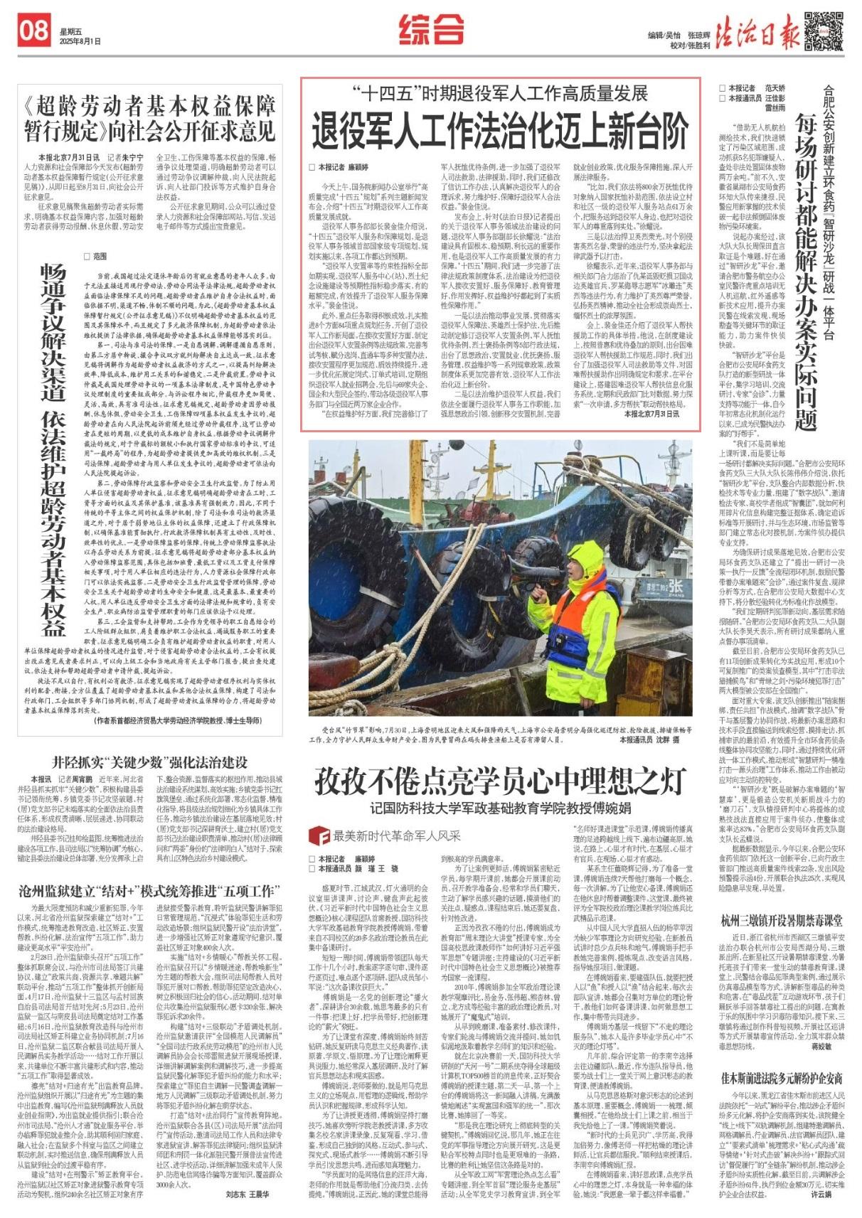 發(fā)布會(huì)上,針對(duì)《法治日?qǐng)?bào)》記者提出的關(guān)于退役軍人事務(wù)領(lǐng)域法治建設(shè)的問(wèn)題,退役軍人事務(wù)部副部長(zhǎng)徐耀說(shuō):“法治建設(shè)具有固根本、穩(wěn)預(yù)期、利長(zhǎng)遠(yuǎn)的重要作用,也是退役軍人工作高質(zhì)量發(fā)展的有力保障。‘十四五’期間,我們進(jìn)一步完善了法律法規(guī)政策制度體系,法治建設(shè)為把退役軍人接收安置好、服務(wù)保障好、教育管理好、作用發(fā)揮好、權(quán)益維護(hù)好都起到了實(shí)質(zhì)性保障作用。”