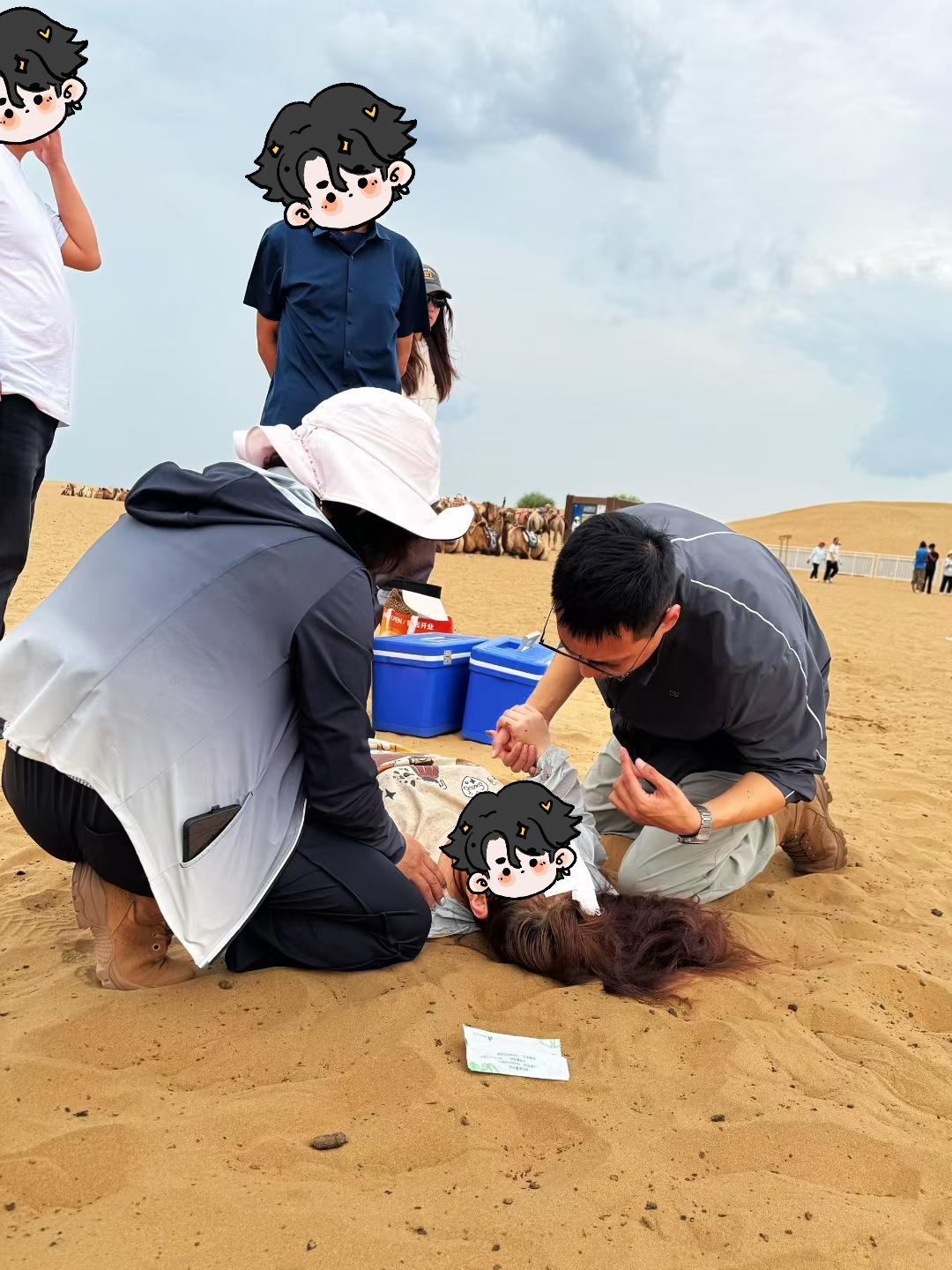 當(dāng)日下午,一名30多歲女游客帶著三歲兒子體驗(yàn)景區(qū)駱駝騎行項(xiàng)目時(shí),因駱駝突然受驚失衡,母子二人從駝背上墜落倒地,情況十分危急。景區(qū)工作人員雖然第一時(shí)間抵達(dá)現(xiàn)場(chǎng),但因缺乏專業(yè)醫(yī)療知識(shí),無法及時(shí)進(jìn)行有效救治。
