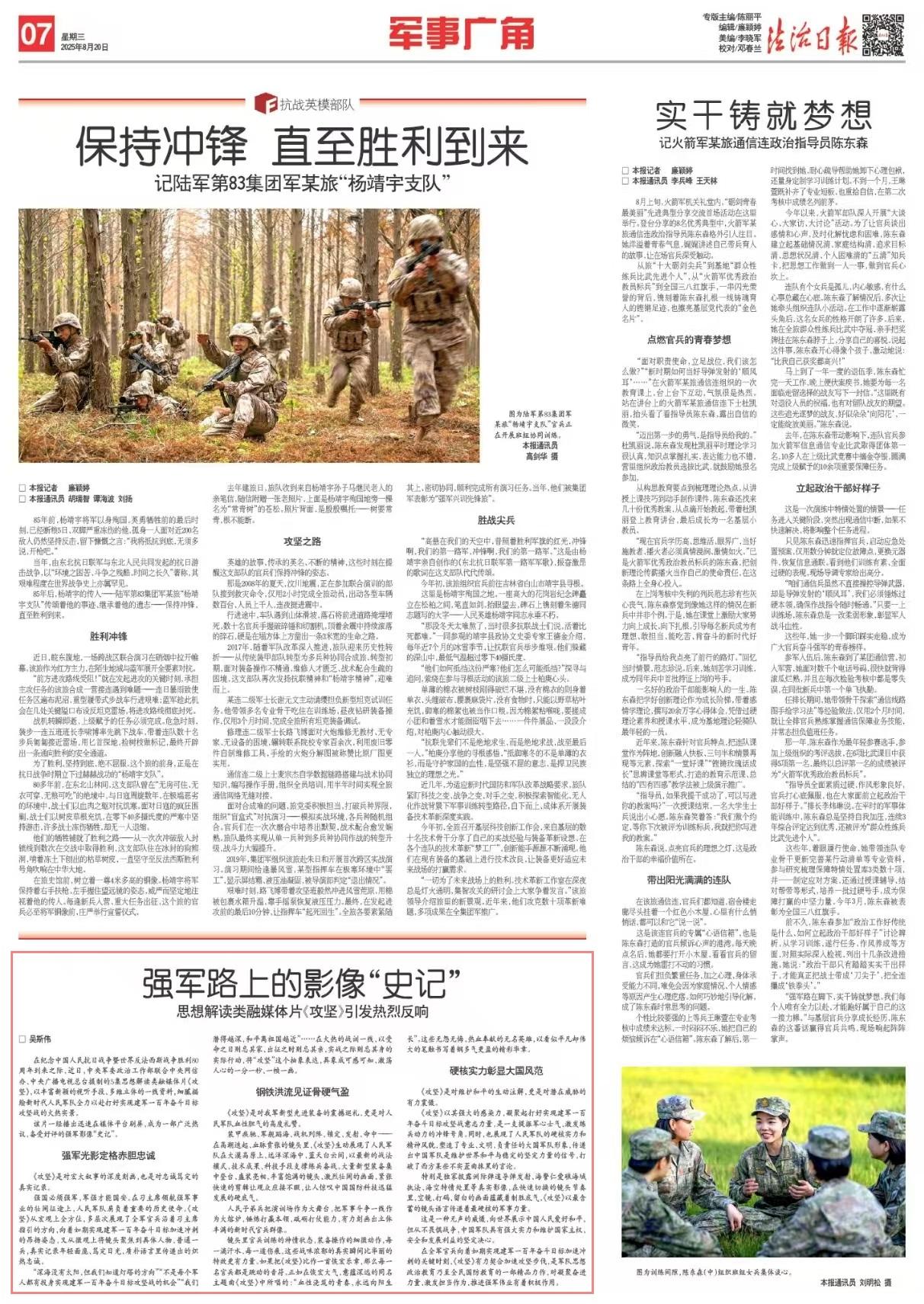 在紀(jì)念中國(guó)人民抗日戰(zhàn)爭(zhēng)暨世界反法西斯戰(zhàn)爭(zhēng)勝利80周年到來(lái)之際,近日,中央軍委政治工作部聯(lián)合中央網(wǎng)信辦、中央廣播電視總臺(tái)攝制的5集思想解讀類融媒體片《攻堅(jiān)》,以豐富新穎的視聽手段、多維立體的一線資料,細(xì)膩描繪新時(shí)代人民軍隊(duì)全力以赴打好實(shí)現(xiàn)建軍一百年奮斗目標(biāo)攻堅(jiān)戰(zhàn)的火熱實(shí)景。