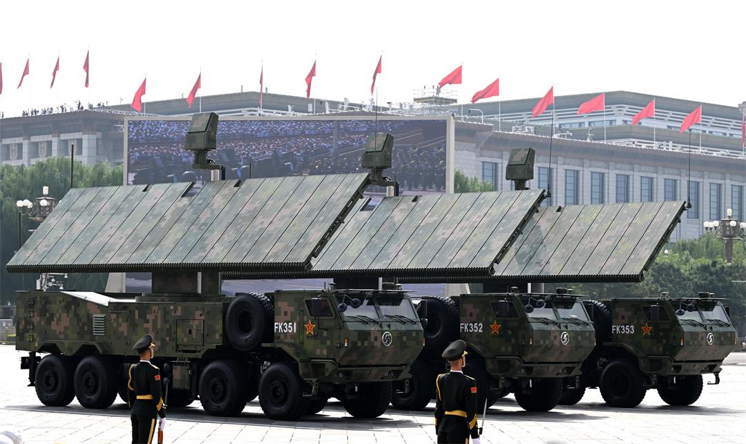 它們中,有洞悉戰(zhàn)場風云、搶占制勝先機的預警探測方隊。受閱的4型裝備都是國產(chǎn)新一代高機動雷達,遠近銜接、協(xié)同組網(wǎng),能夠探測隱身飛機、彈道導彈等目標,是守望國家空天安全的“千里眼”。