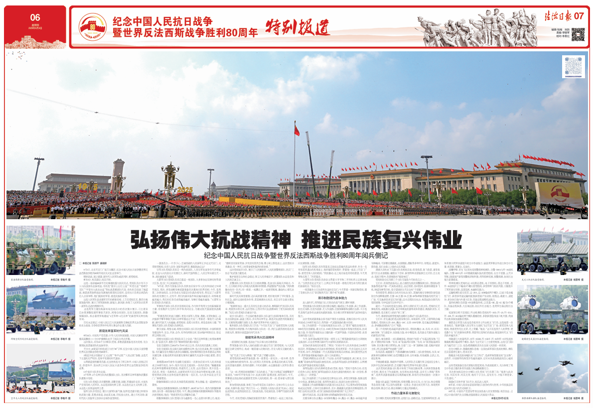 圖為9月3日,紀念中國人民抗日戰(zhàn)爭暨世界反法西斯戰(zhàn)爭勝利80周年閱兵式在北京隆重舉行。本報記者 楊晉峰 攝