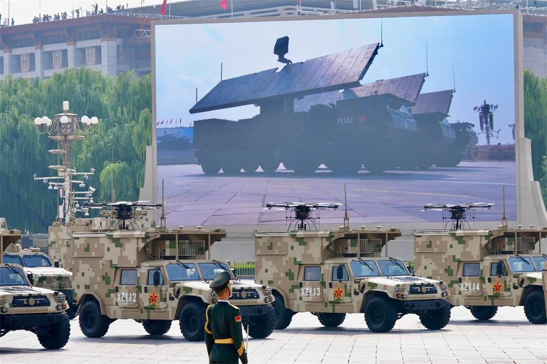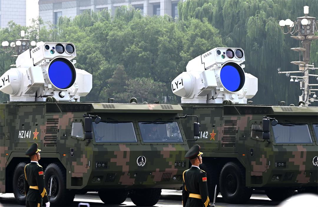 最后一個出場的是低空戰(zhàn)場、密織火網(wǎng)的反無人機方隊。受閱的反無彈炮系統(tǒng)、高能激光武器、高功率微波武器等成體系建設,既能軟殺傷,又能硬摧毀,是反制無人機的“鐵三角”。