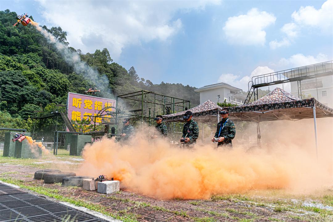 在陣陣喝彩聲中,高樓攀登、索降、無人機(jī)打擊目標(biāo)、火焰噴射器使用等課目陸續(xù)展開。綠茵場上一時(shí)殺聲震天,火舌躍動(dòng),硝煙彌漫。