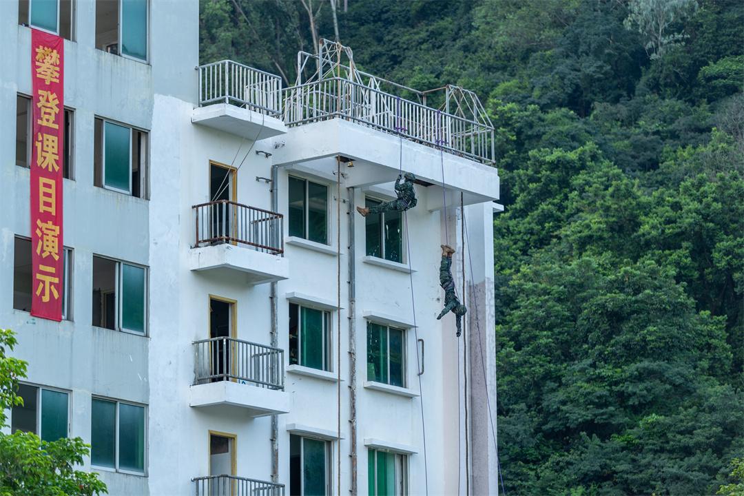 圖為武警官兵正在進(jìn)行攀登課目演示。劉佳良 攝