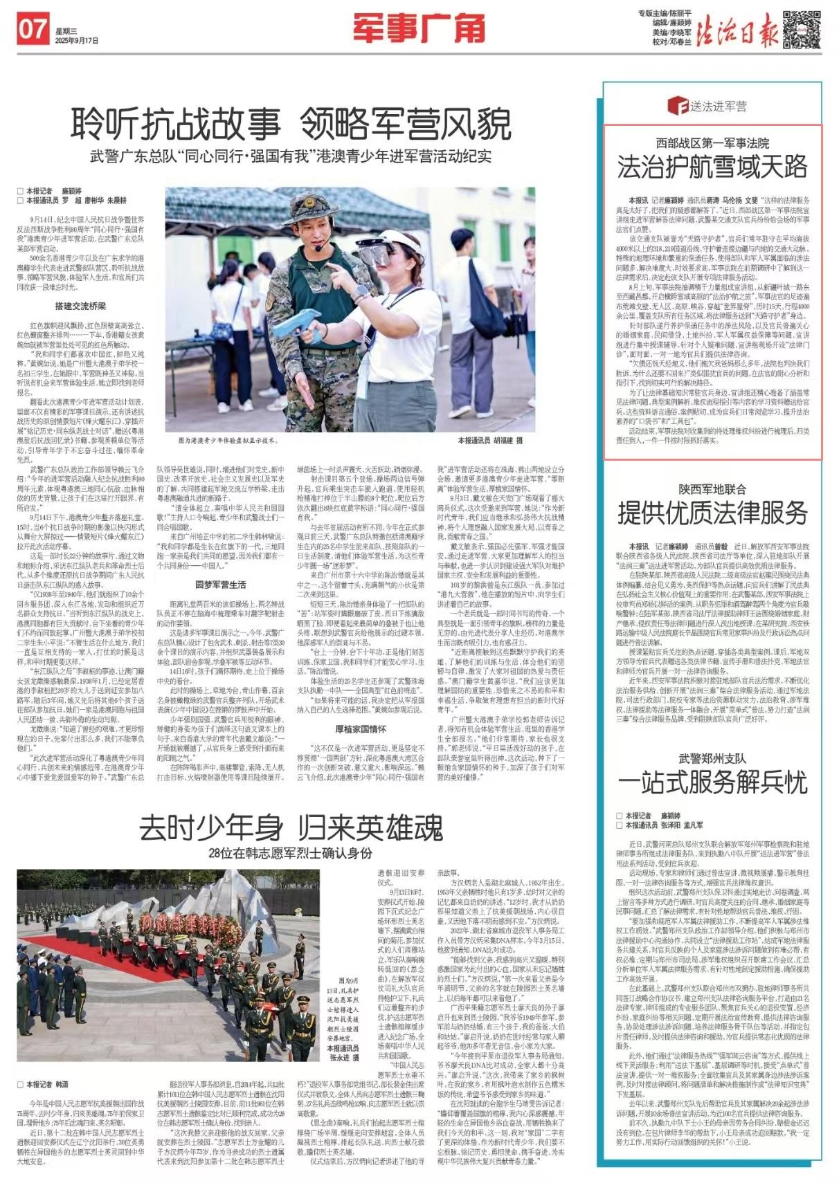 “這樣的法律服務(wù)真是太好了,把我們的疑惑都解答了?!苯?,西部戰(zhàn)區(qū)第一軍事法院宣講組走進軍營解答法律問題,武警某交通支隊官兵紛紛給會場的軍事法官們點贊。
