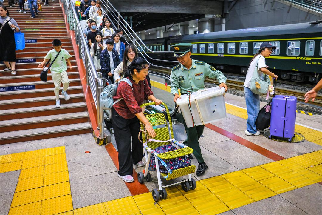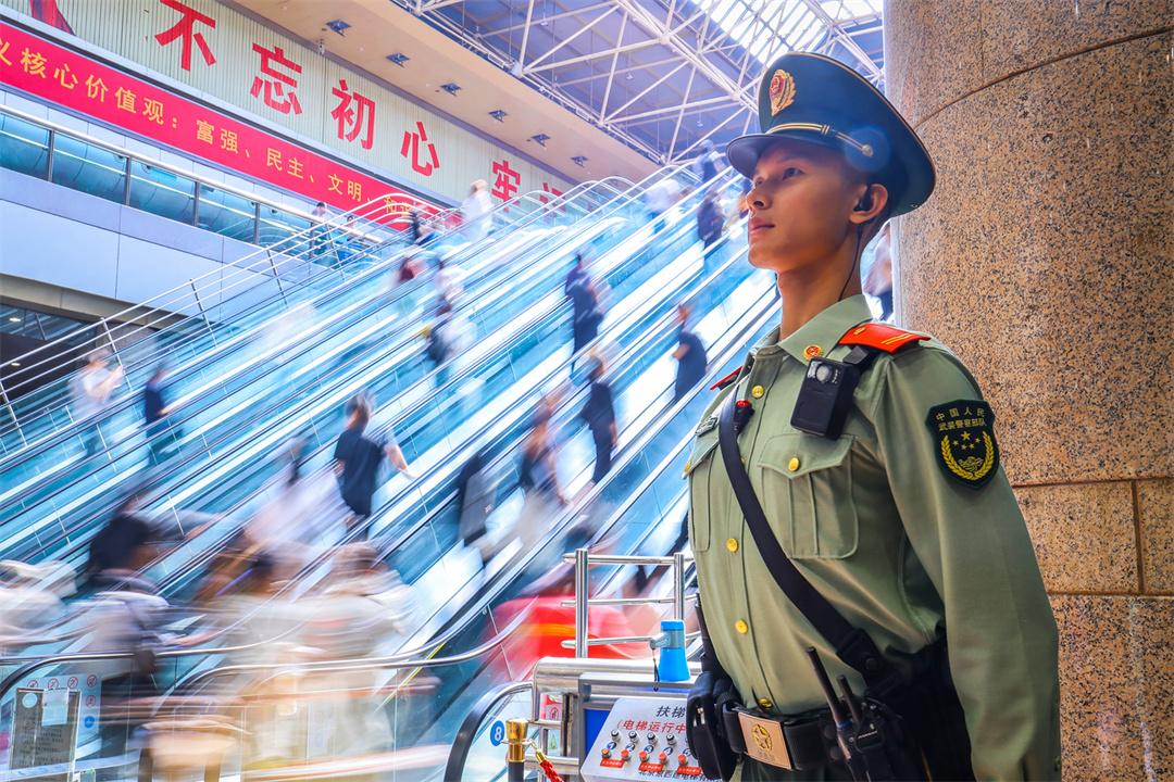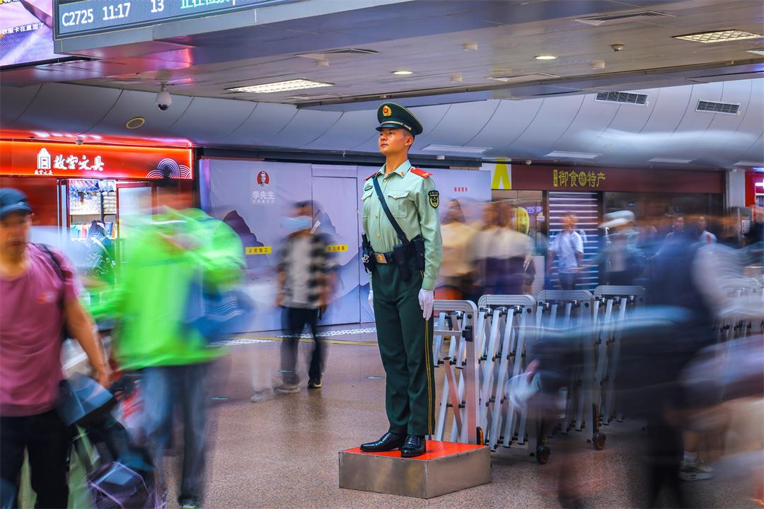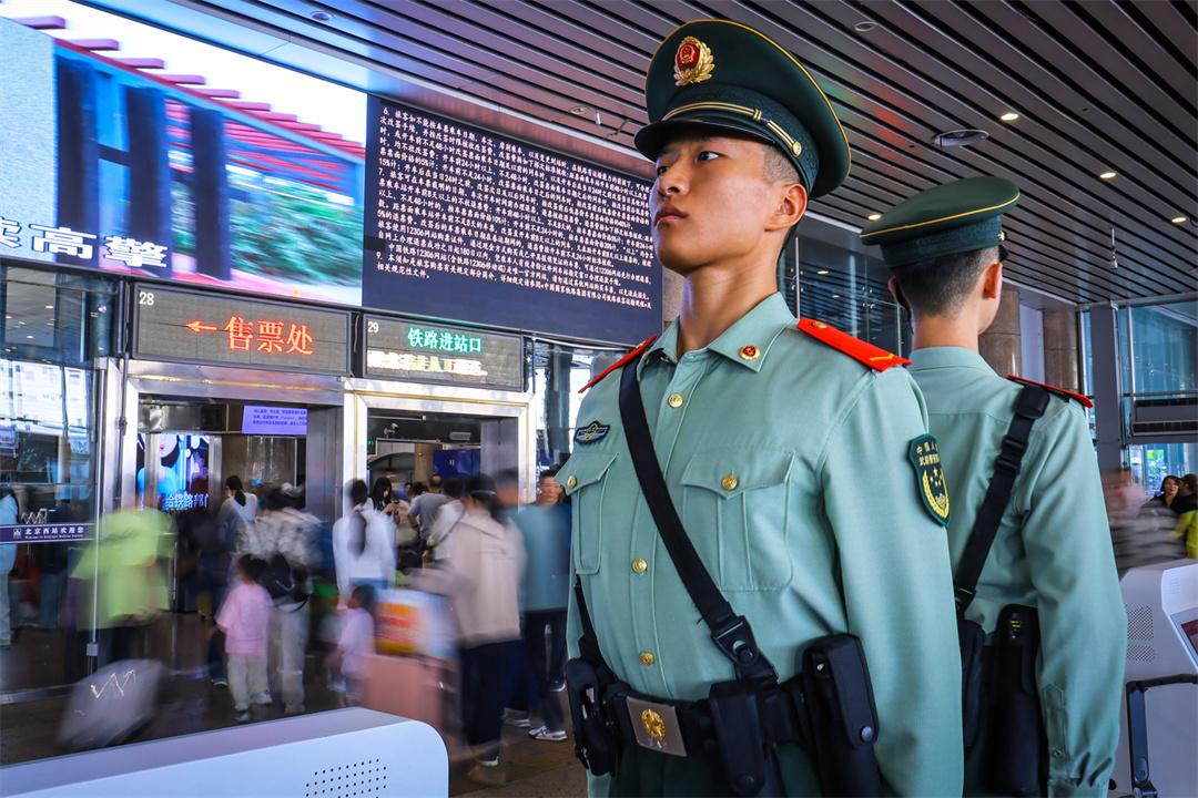 國慶假期最后兩天,北京鐵路交通樞紐迎來雙向返程客流高峰。為保障旅客安全有序出行,武警北京總隊執(zhí)勤第六支隊官兵堅守執(zhí)勤戰(zhàn)位,與重點站區(qū)管委會、鐵路公安等部門搭建聯(lián)防聯(lián)控體系,通過實時客流監(jiān)測系統(tǒng)動態(tài)調(diào)整勤務部署,在進出站口、安檢區(qū)、候車大廳等關鍵點位設置警戒哨,協(xié)助維護秩序,熱心提供幫助,以實際行動確保旅客平安順利出行。
