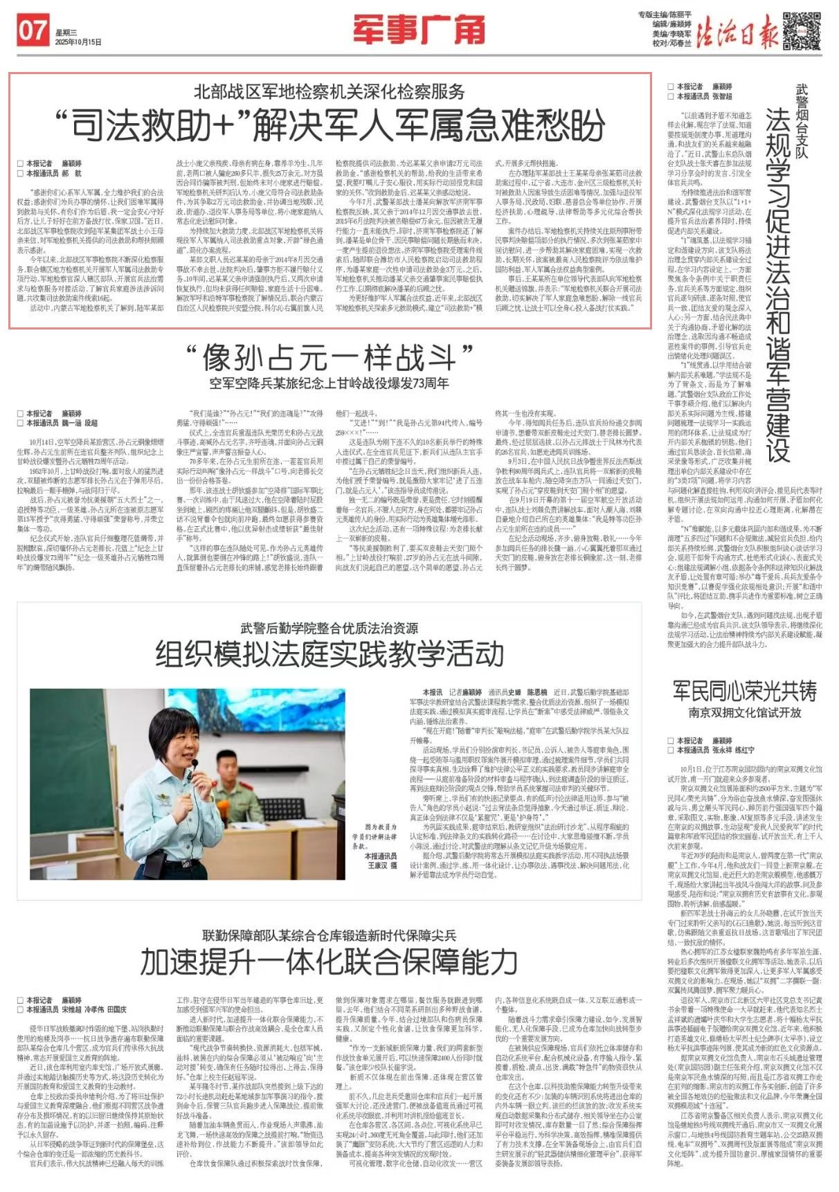 為持續(xù)加大救助力度,北部戰(zhàn)區(qū)軍地檢察機關(guān)將現(xiàn)役軍人軍屬納入司法救助重點對象,開辟“綠色通道”,簡化辦案流程。