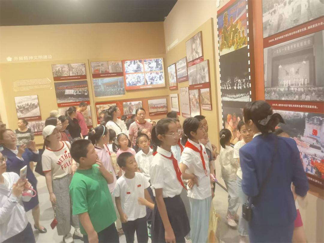 南京雙擁文化館展陳面積約2500平方米,主題為“軍民同心榮光共鑄”,分為浴血奮戰(zhàn)魚水情深、奮發(fā)圖強(qiáng)休戚與共、勇立潮頭軍民同心、踔厲前行強(qiáng)國強(qiáng)軍四個(gè)篇章,采取圖文、實(shí)物、影像、AI復(fù)原等多元手段,講述發(fā)生在南京的雙擁故事,生動(dòng)呈現(xiàn)“愛我人民愛我軍”的時(shí)代篇章和軍政軍民團(tuán)結(jié)的恢宏畫卷。試開放當(dāng)天,有上千人次前來參觀。