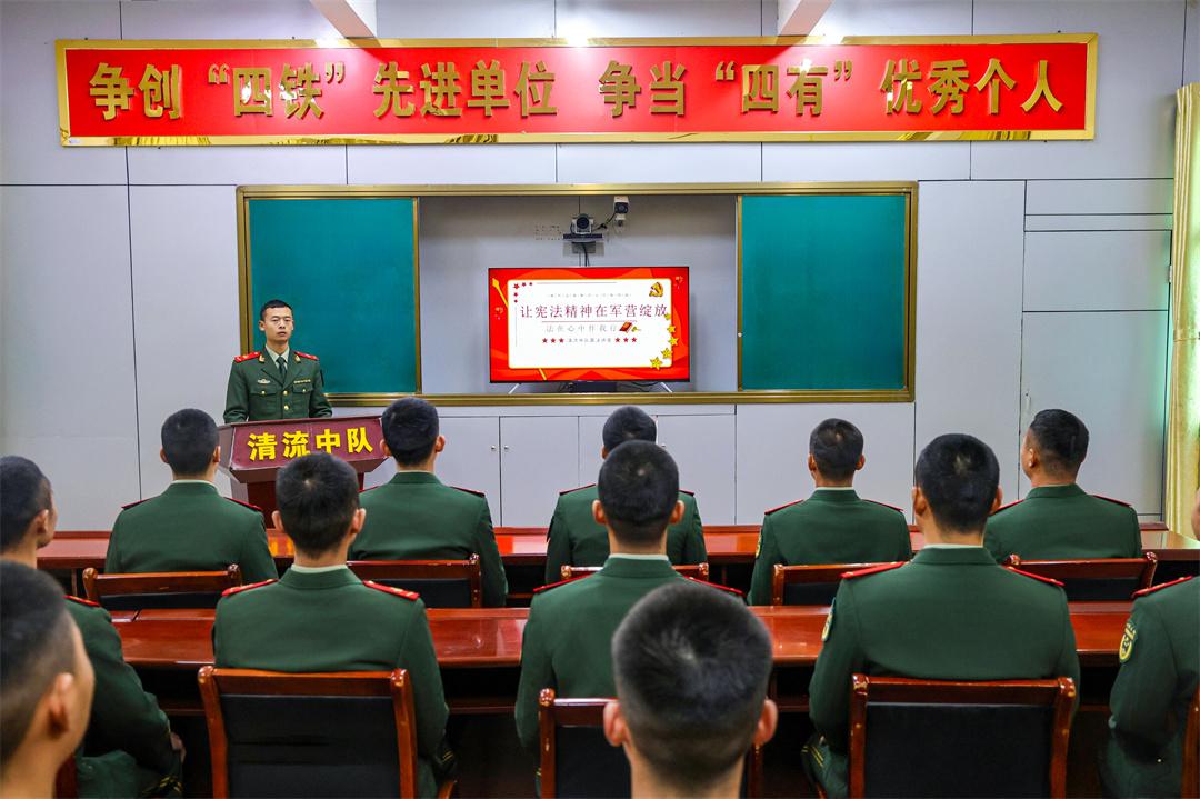 “從我出生,憲法賦予我權(quán)利的同時(shí),也將保衛(wèi)祖國(guó)的神圣職責(zé)烙在我心中;當(dāng)我穿上軍裝,不僅是在履行公民的光榮義務(wù),更是我用青春作出的無(wú)悔選擇……”在三明支隊(duì)某中隊(duì)“憲法伴我成長(zhǎng)”演講比賽上,上等兵小王結(jié)合自身經(jīng)歷,暢談對(duì)憲法精神的理解。他通過(guò)樸實(shí)有力的話語(yǔ),闡述了憲法不僅保障公民權(quán)利,而且是軍人履行使命的根本遵循,引發(fā)官兵強(qiáng)烈共鳴。