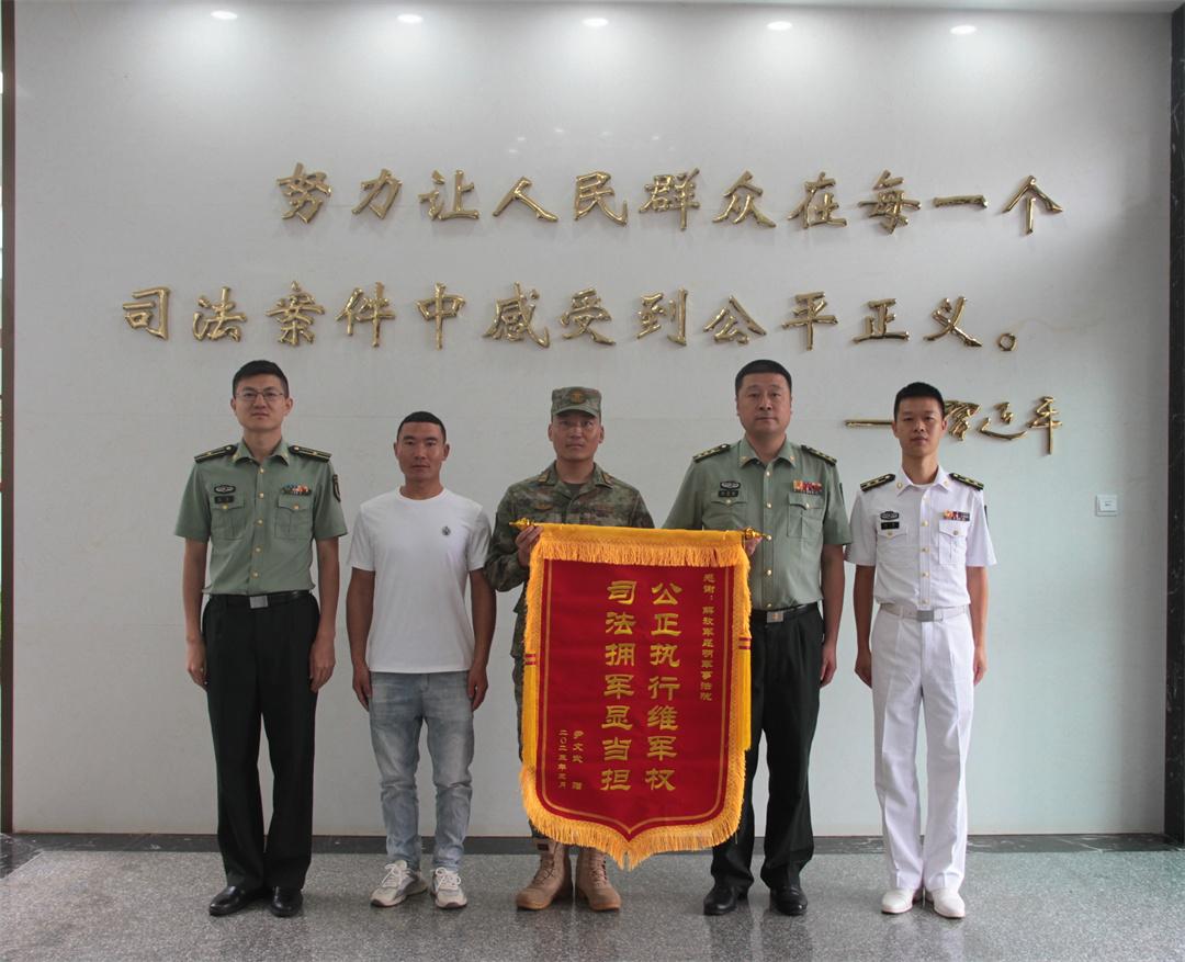 圖為部隊(duì)官兵向昆明軍事法院贈(zèng)送錦旗。