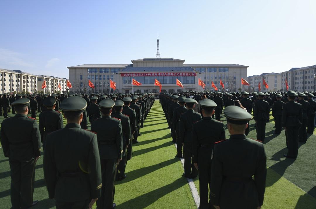 近日,武警安徽總隊舉行2025年度秋季新兵授銜儀式,千余名新兵經過三個月訓練,被授予武警列兵警銜,正式成為一名光榮的武警戰(zhàn)士。