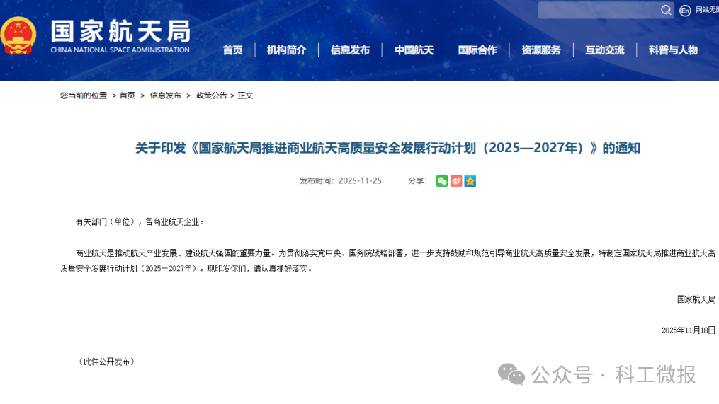 2025年,國家國防科工局設立商業(yè)航天司,印發(fā)《推進商業(yè)航天高質(zhì)量安全發(fā)展行動計劃(2025-2027年)》,提出將商業(yè)航天納入國家航天發(fā)展總體布局,加快形成航天新質(zhì)生產(chǎn)力,實現(xiàn)航天發(fā)展效能整體提升,有力支撐航天強國建設。全年商業(yè)航天持續(xù)快速發(fā)展,產(chǎn)業(yè)生態(tài)協(xié)同推進,科研生產(chǎn)安全有序,產(chǎn)業(yè)規(guī)模不斷壯大,創(chuàng)新創(chuàng)造活力持續(xù)增強,行業(yè)治理能力不斷提升。在液氧甲烷重復使用火箭研制中,首次吸納商業(yè)航天企業(yè)作為總承研單位參與;海南商業(yè)航天發(fā)射場正式具備雙工位發(fā)射能力;多型商業(yè)火箭完成發(fā)射任務。