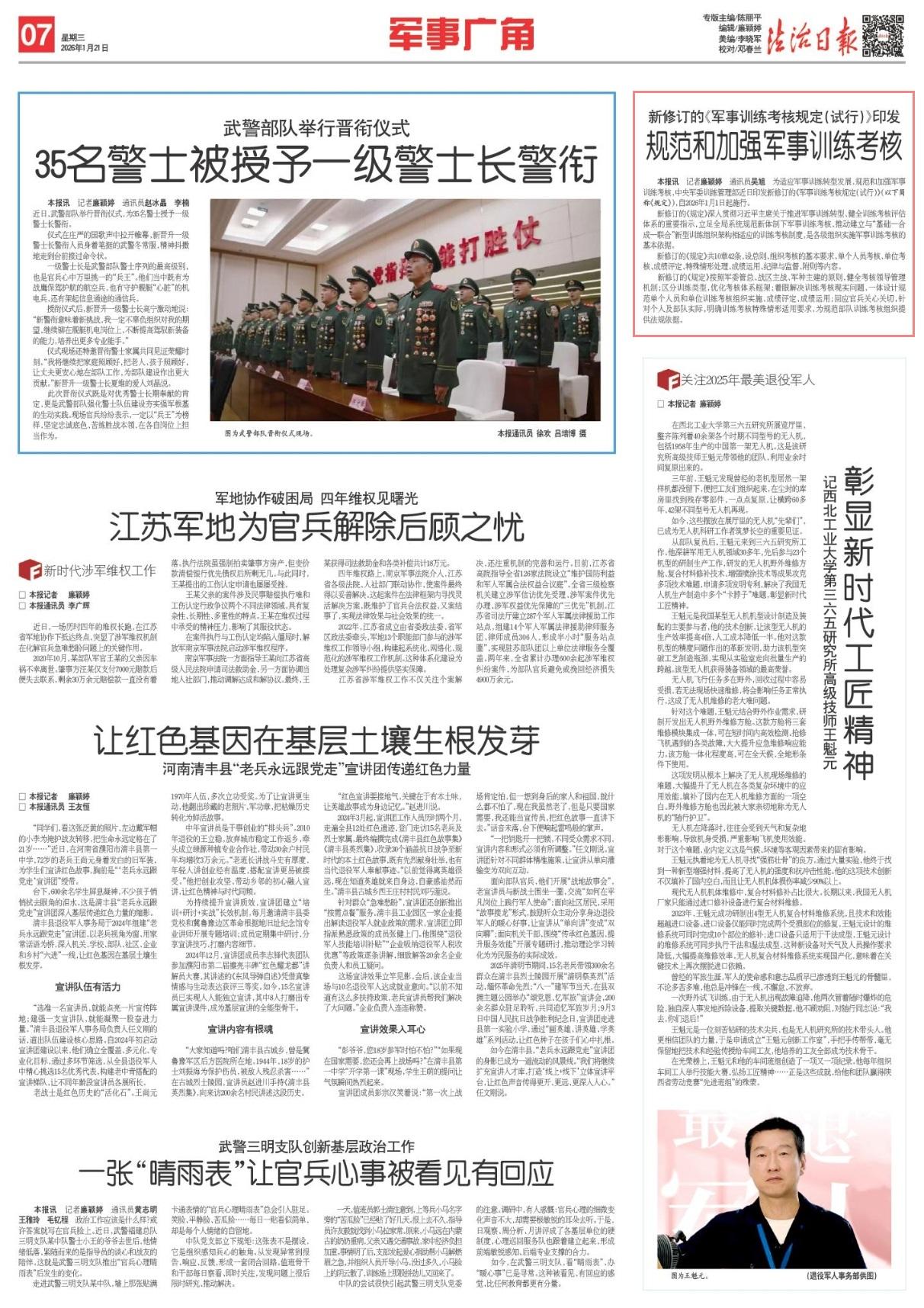 新修訂的《規(guī)定》按照軍委管總、戰(zhàn)區(qū)主戰(zhàn)、軍種主建的原則,健全考核領(lǐng)導(dǎo)管理機(jī)制;區(qū)分訓(xùn)練類型,優(yōu)化考核體系框架;著眼解決訓(xùn)練考核現(xiàn)實(shí)問(wèn)題,一體設(shè)計(jì)規(guī)范單個(gè)人員和單位訓(xùn)練考核組織實(shí)施、成績(jī)?cè)u(píng)定、成績(jī)運(yùn)用;回應(yīng)官兵關(guān)心關(guān)切,針對(duì)個(gè)人及部隊(duì)實(shí)際,明確訓(xùn)練考核特殊情形適用要求,為規(guī)范部隊(duì)訓(xùn)練考核組織提供法規(guī)依據(jù)。