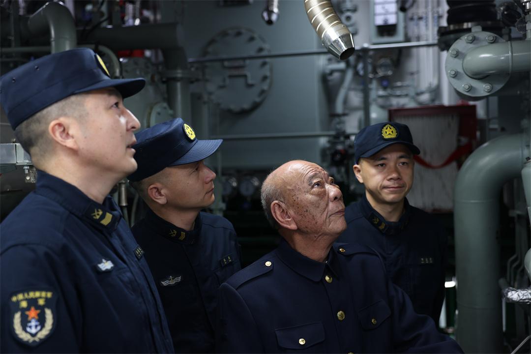 圖為一等戰(zhàn)功“海上猛虎艇”588艇原輪機(jī)班長(zhǎng)王木昌參觀第五代“海上猛虎艇”紅河艦機(jī)艙,感受新老“海上猛虎艇”發(fā)展變遷。劉嘉 攝