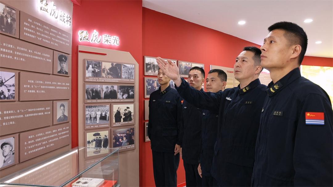 “以前的艦艇裝備簡(jiǎn)陋,先輩們靠著對(duì)黨的絕對(duì)忠誠(chéng),在海上槍林彈雨中殺出一條血路?,F(xiàn)在裝備先進(jìn)了,但忠誠(chéng)的底色不能變,越是走得遠(yuǎn)、沖在前,越不能偏離航向?!奔t河艦一級(jí)軍士長(zhǎng)韓建廷站在文化長(zhǎng)廊前對(duì)年輕艦員說(shuō)。
