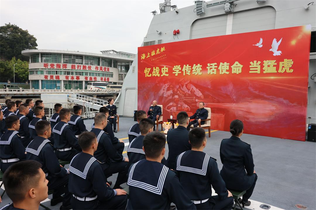 崇武以東海戰(zhàn)親歷者、“海上猛虎艇”588艇原輪機(jī)班班長(zhǎng)王木昌和參加首批南沙戰(zhàn)備巡邏的第三代“海上猛虎艇”艇長(zhǎng)謝建明受邀,與官兵共話經(jīng)典戰(zhàn)例和戰(zhàn)斗故事。