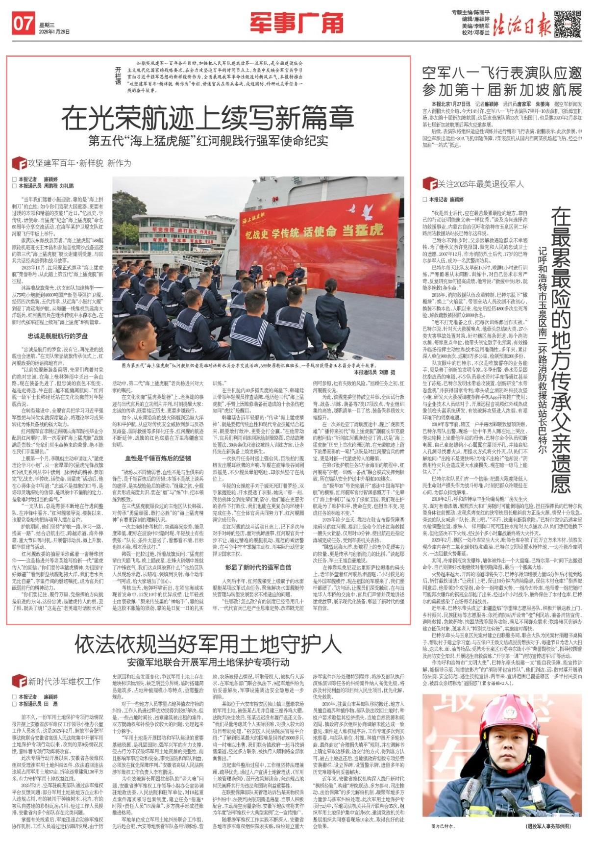 如今,從東南沿海的戰(zhàn)火硝煙到遠(yuǎn)海大洋的和平護(hù)航,從應(yīng)對(duì)傳統(tǒng)安全威脅到參與反恐反海盜、國(guó)際救援等多樣化任務(wù),紅河艦的航跡不斷延伸,戰(zhàn)旗的紅色底蘊(yùn)在萬(wàn)里海疆愈發(fā)鮮明。