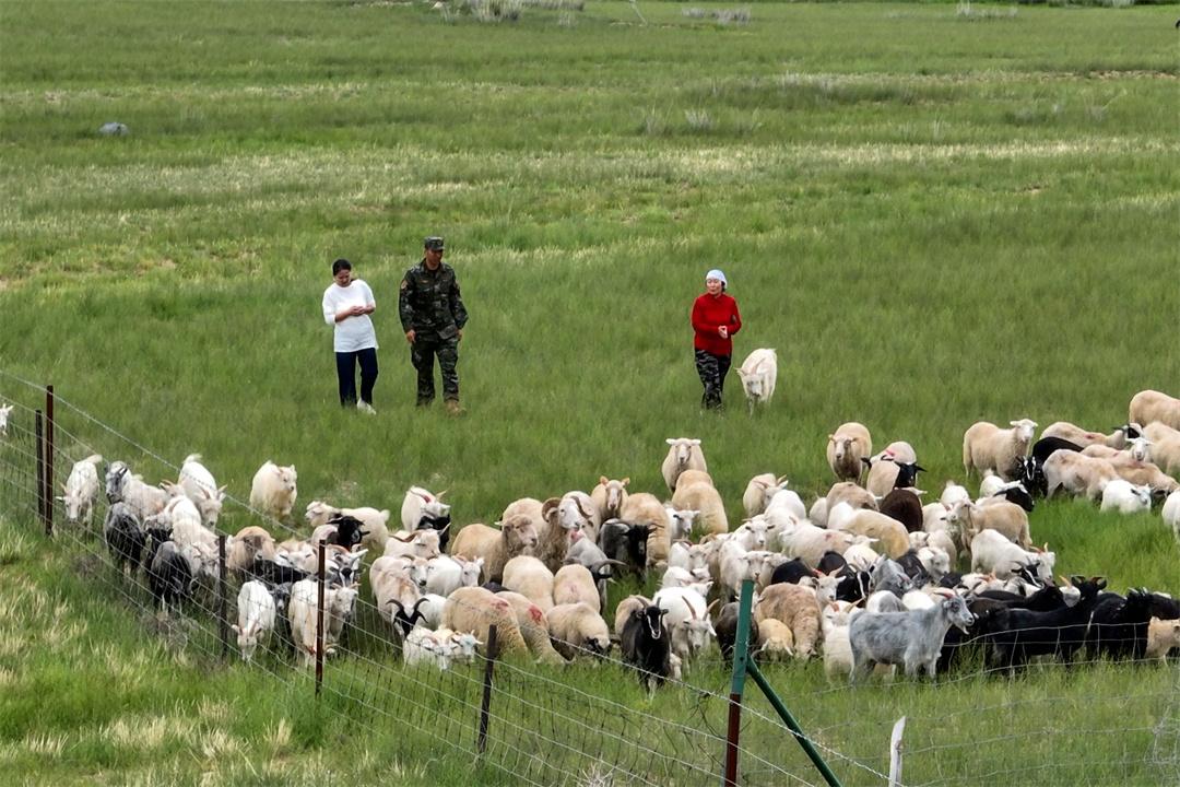 圖為布和圖木爾(中)到牧區(qū)草場(chǎng)實(shí)地走訪。