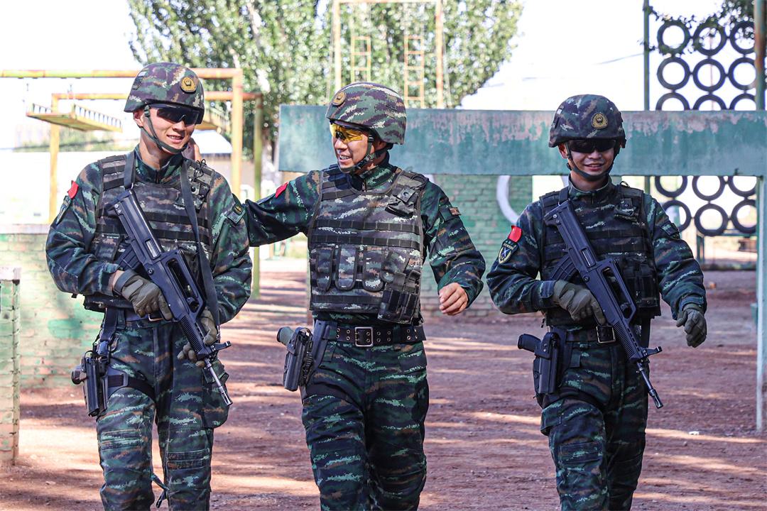 圖為布和圖木爾(中)訓(xùn)練后與戰(zhàn)士親切交流。