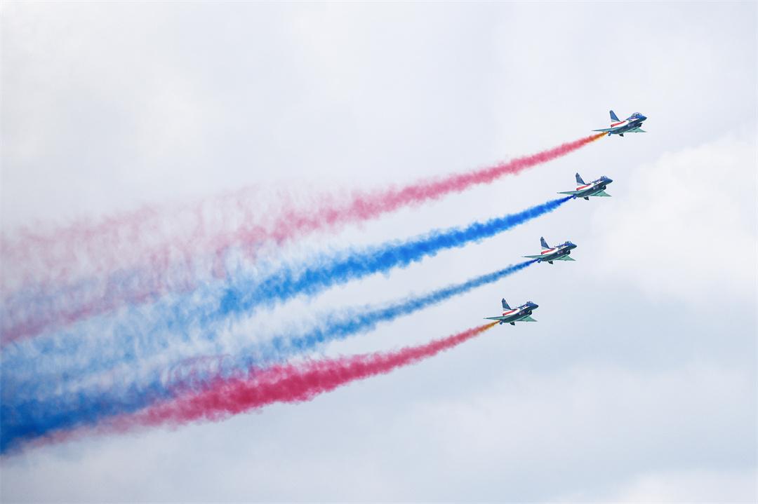 隨后,六機斤斗、單機小速度平飛、五機水平開花等高難度動作銜接行云流水、一氣呵成,鐵翼翱翔與柔美視覺有機融合,給現(xiàn)場觀眾帶去極具震撼的視覺盛宴。