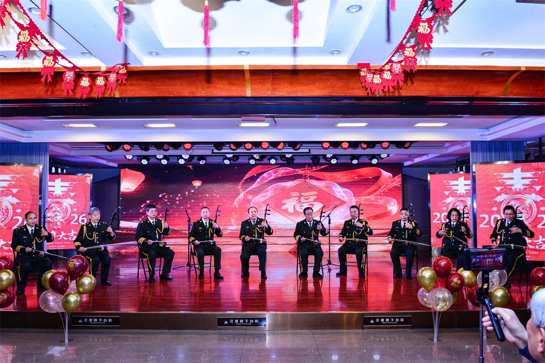 二胡齊奏《喜洋洋》旋律歡快、節(jié)奏明快,將新春的喜悅傳遞給現(xiàn)場(chǎng)每一位觀眾;獨(dú)舞《輕舞》韻味十足,在精心設(shè)計(jì)的背景映襯下更顯藝術(shù)魅力。整臺(tái)聯(lián)歡會(huì)的高潮,當(dāng)屬大合唱《當(dāng)那一天來(lái)臨》《祖國(guó)不會(huì)忘記》,合唱隊(duì)整齊嘹亮的歌聲,氣勢(shì)恢宏、蕩氣回腸,加之電視屏上再現(xiàn)戍邊衛(wèi)國(guó)場(chǎng)景的壯觀畫(huà)面,將軍旅情懷與家國(guó)大愛(ài)展現(xiàn)得淋漓盡致,不少老兵望著屏幕、聽(tīng)著歌聲,回想起昔日并肩作戰(zhàn)的歲月,忍不住熱淚盈眶,現(xiàn)場(chǎng)掌聲經(jīng)久不息。