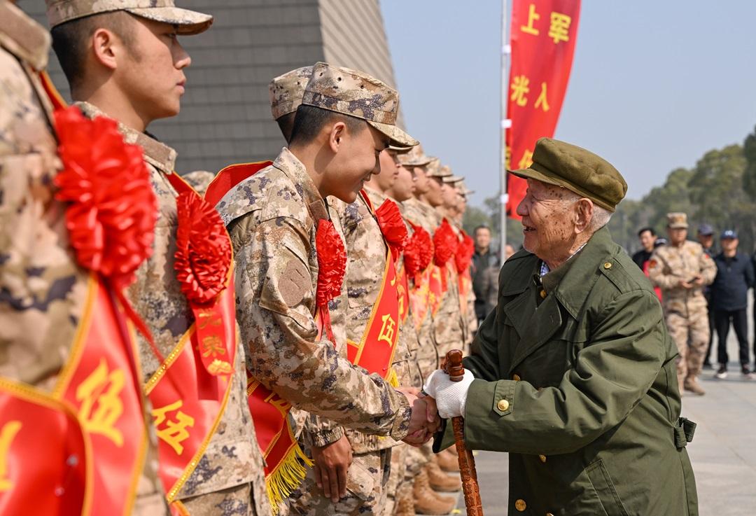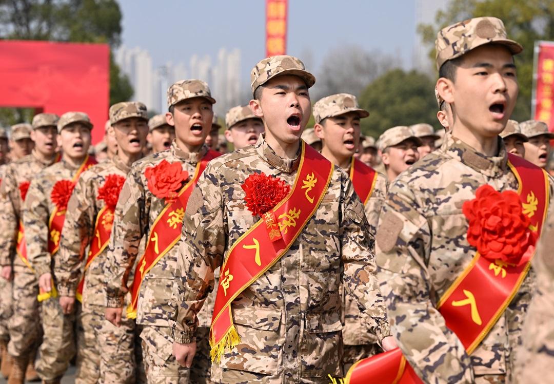 3月13日,安徽省合肥市舉行2026年上半年新兵入伍歡送儀式。圖為在渡江戰(zhàn)役紀(jì)念館解放廣場(chǎng),身著迷彩服、胸前佩戴大紅花的新戰(zhàn)士整齊列隊(duì),帶著父老鄉(xiāng)親的囑托,奔赴軍營(yíng)建功立業(yè)。
