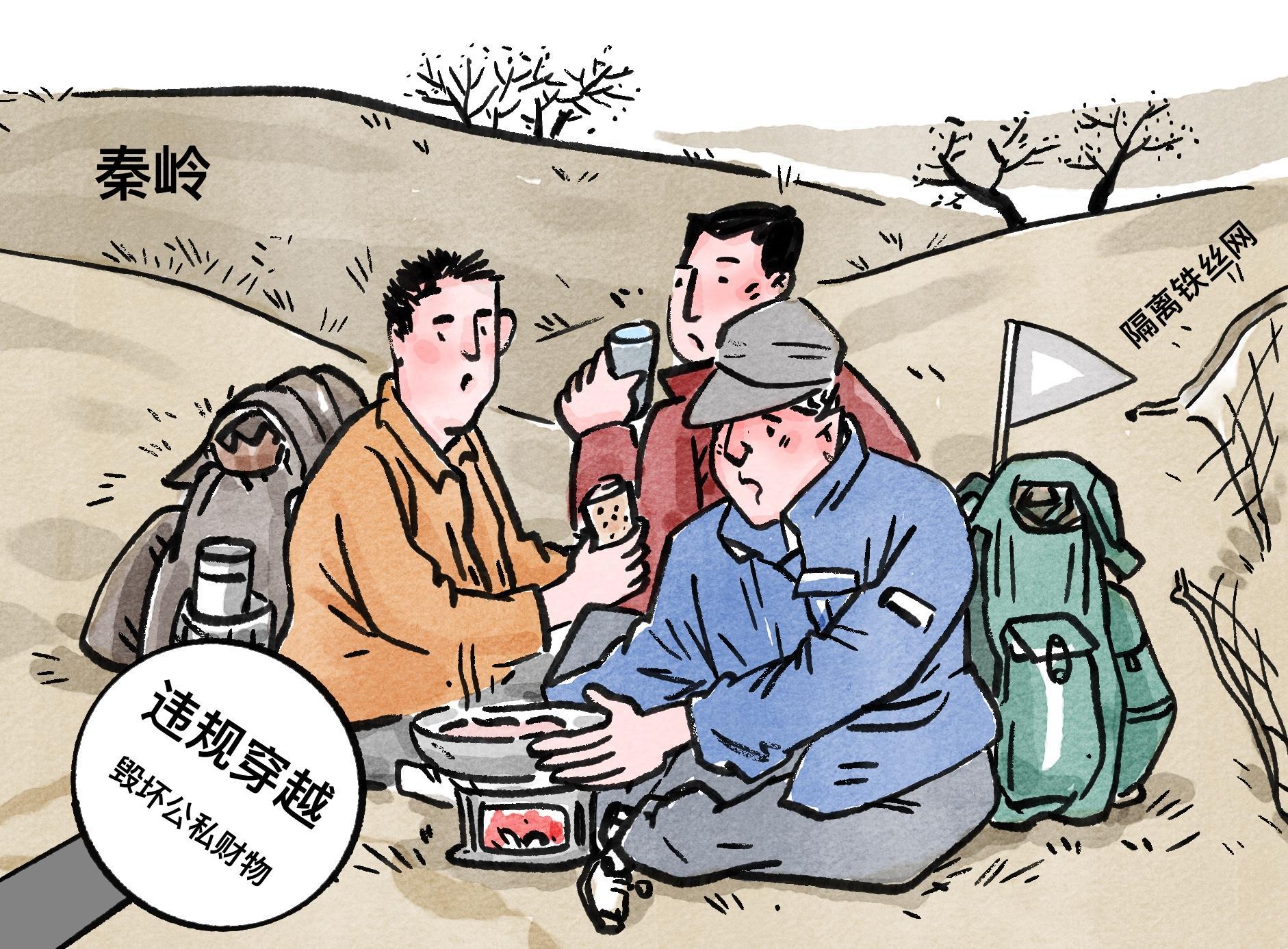 點評:私越秦嶺違律條,毀網(wǎng)炊煮惹禍苗,法網(wǎng)恢恢逃不掉,依法懲處絕不饒。