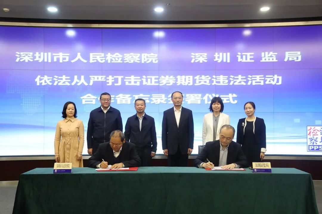 為加強行政執(zhí)法與刑事司法高效銜接,加大證券違法犯罪懲治力度,1月12日,廣東省深圳市人民檢察院、深圳證監(jiān)局簽署依法從嚴打擊證券期貨違法活動合作備忘錄。