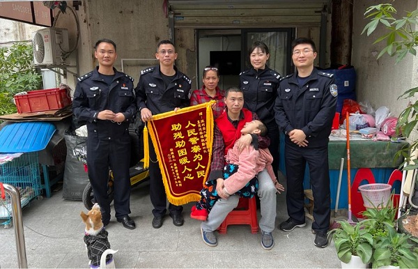民警們的到來令小茜一家人深受感動,盡管孩子沒有健康的身體,但民警們?nèi)珀柟獍銧N爛的笑容,也為其帶來些許溫暖,讓愛不孤單。小茜家長再三對移民管理警察的關心與真誠幫助表示由衷感謝,并將事先制作好的一面繡有“人民警察為人民,助殘助困暖人心”錦旗贈送皇崗邊檢站執(zhí)勤四隊,以表達感激之情。此次春節(jié)慰問活動,不僅向該名特殊兒童家庭送去溫暖,進一步傳遞了尊重、友善的社會正能量,更詮釋了警民魚水情深的深刻內(nèi)涵。