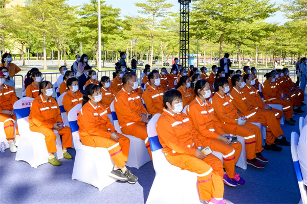 活動(dòng)現(xiàn)場對(duì)全市從事一線環(huán)衛(wèi)工作累計(jì)時(shí)長超過5年的100名優(yōu)秀環(huán)衛(wèi)工人進(jìn)行褒揚(yáng),10名優(yōu)秀環(huán)衛(wèi)工人代表上臺(tái)領(lǐng)獎(jiǎng)。他們以實(shí)際行動(dòng)譜寫了新時(shí)代的勞動(dòng)者之歌,為深圳創(chuàng)建全國文明城市,創(chuàng)建美好的城市環(huán)境作出了重要貢獻(xiàn)。