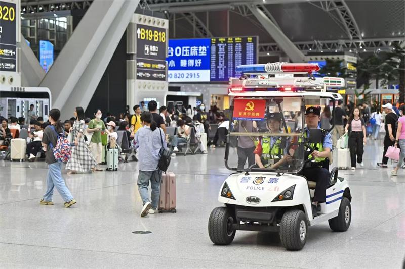 今年端午,“2小時(shí)高鐵圈”成為旅客出游主要范圍,粵港澳大灣區(qū)、粵湘兩地、兩廣區(qū)域的中短途線路備受青睞。為凈化出行環(huán)境,廣州鐵路公安處從機(jī)關(guān)及所隊(duì)調(diào)配近百名警力,部署至廣州南站等客流重點(diǎn)樞紐及重點(diǎn)列車,提升見警率與管事率,嚴(yán)厲打擊霸座、猥褻、醉酒滋事,以及盜竊、詐騙等侵害旅客權(quán)益的違法犯罪行為,切實(shí)增強(qiáng)旅客出行安全感。