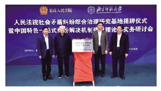 日前,由最高人民法院與北京師范大學(xué)共建的“人民法院社會矛盾糾紛綜合治理研究基地”揭牌儀式暨中國特色一站式糾紛解決機制建設(shè)理論與實務(wù)研討會在北京師范大學(xué)舉行。人民教育家、北京師范大學(xué)刑事法律科學(xué)研究院名譽院長高銘暄,中國法學(xué)會黨組成員、學(xué)術(shù)委員會主任張文顯,最高人民法院黨組成員、副院長姜偉,北京師范大學(xué)校長董奇出席揭牌儀式。揭牌儀式由北京師范大學(xué)法學(xué)院黨委書記、院長梁迎修主持。